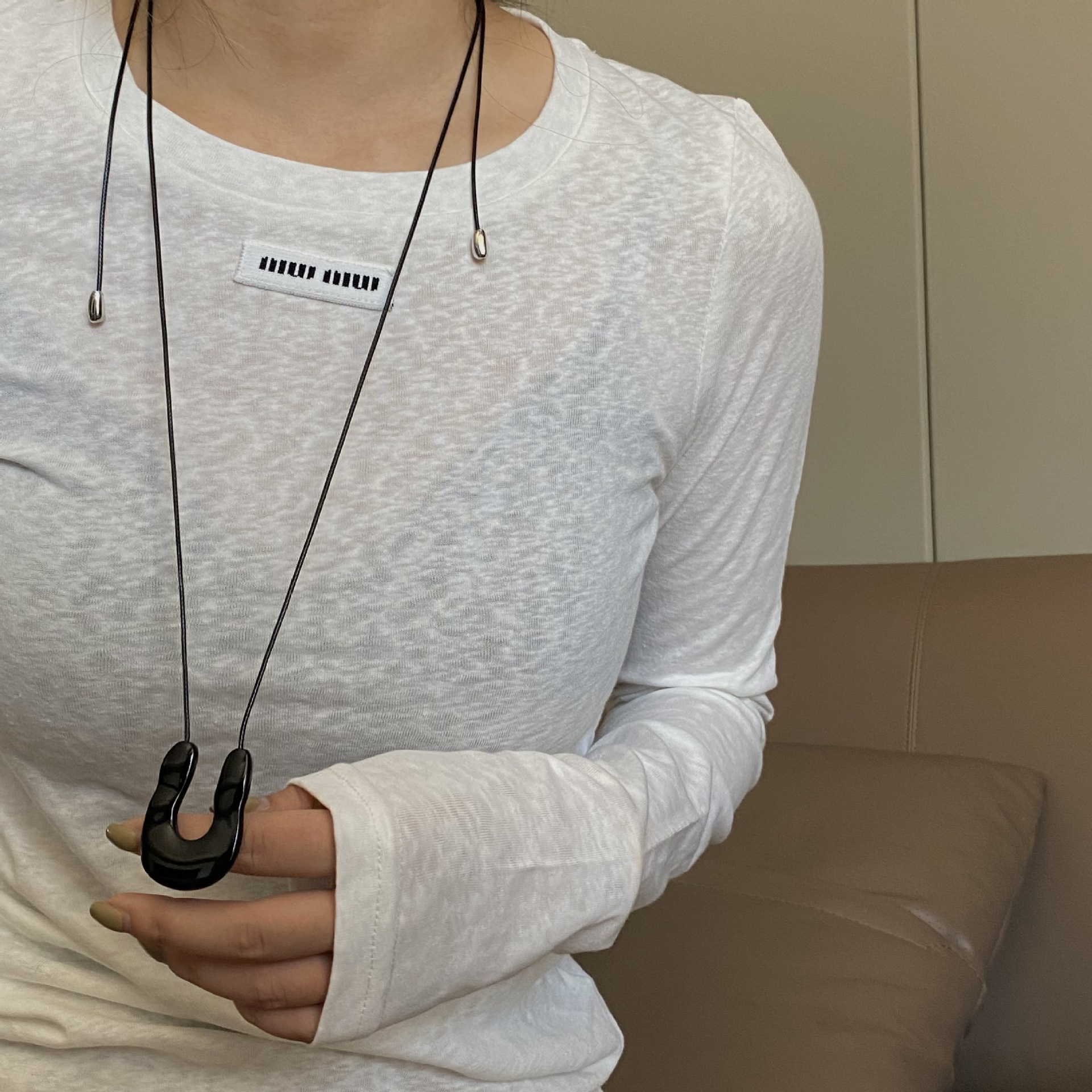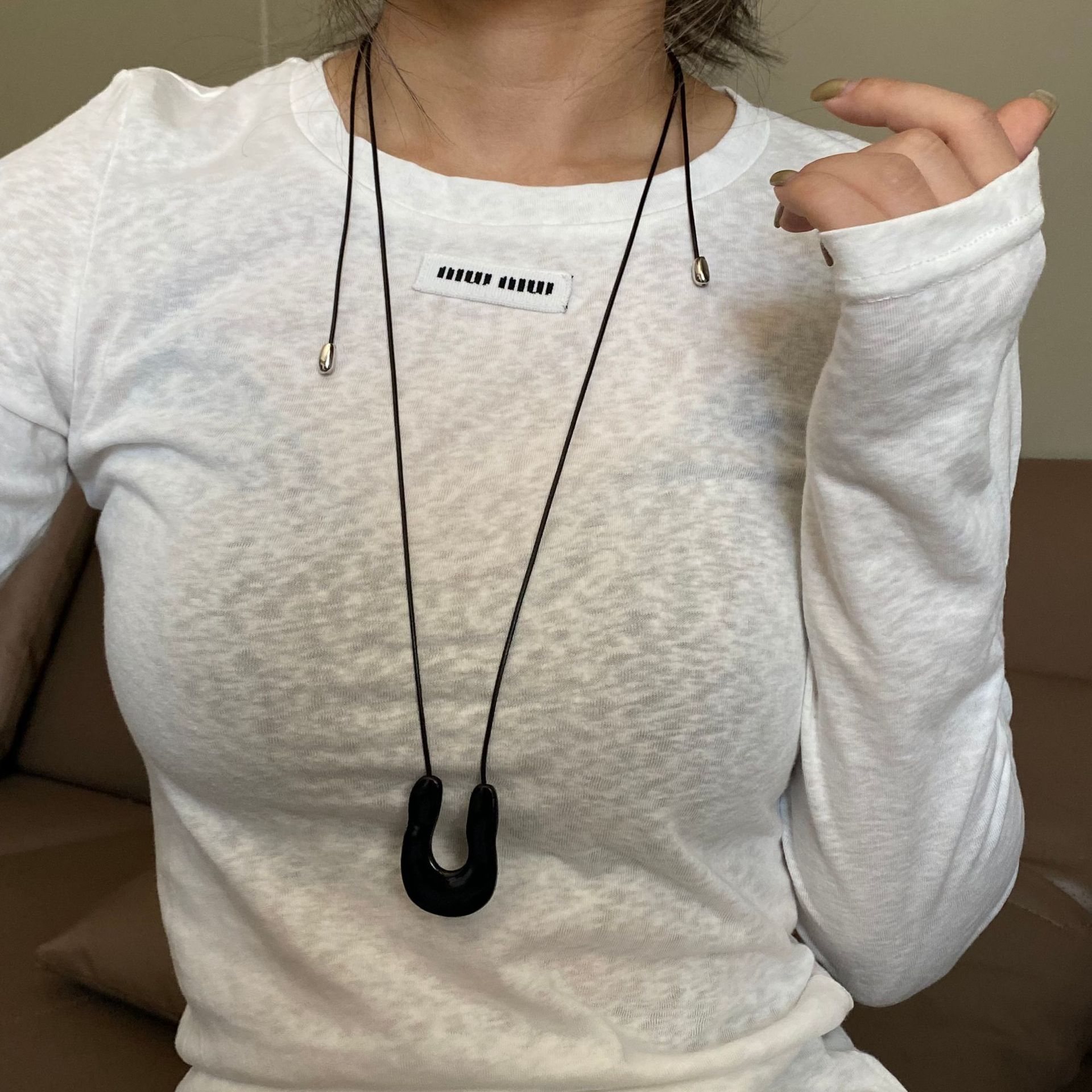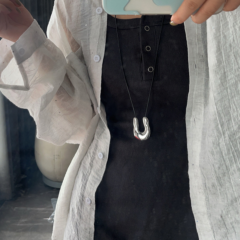 black u-shaped metal double-sided black rope necklace