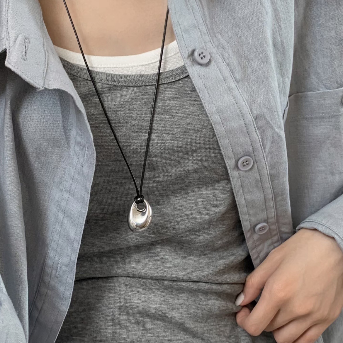 silver special-shaped water drop black rope necklace