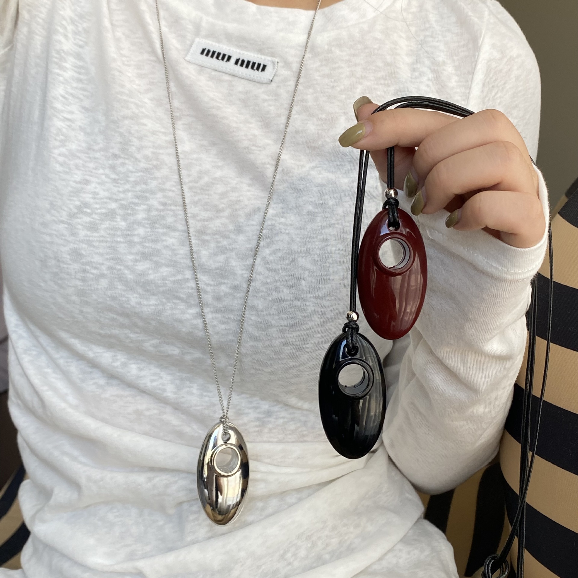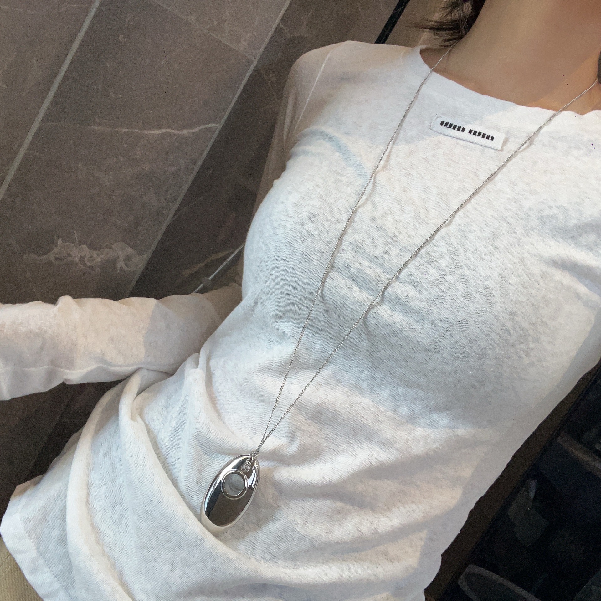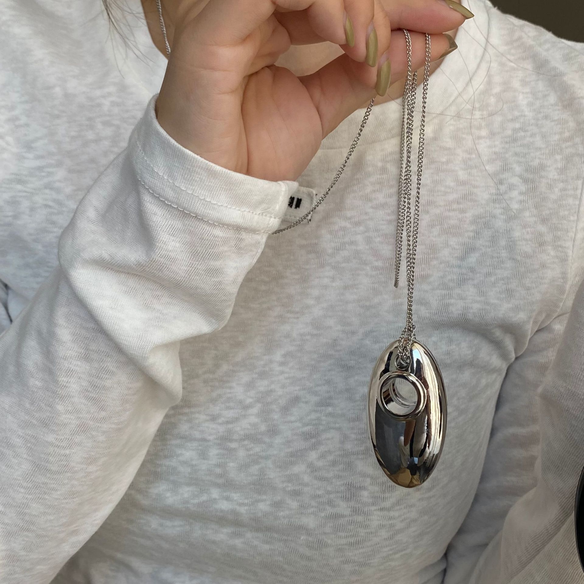 silver metal oval necklace