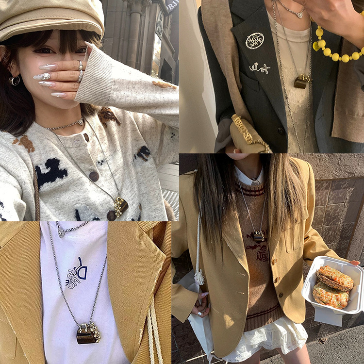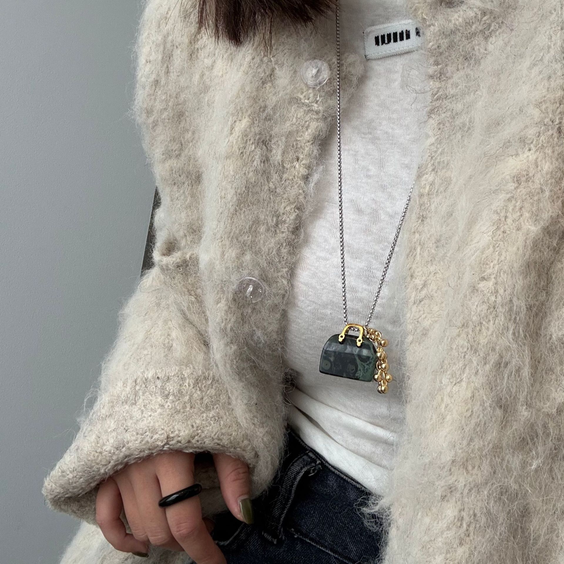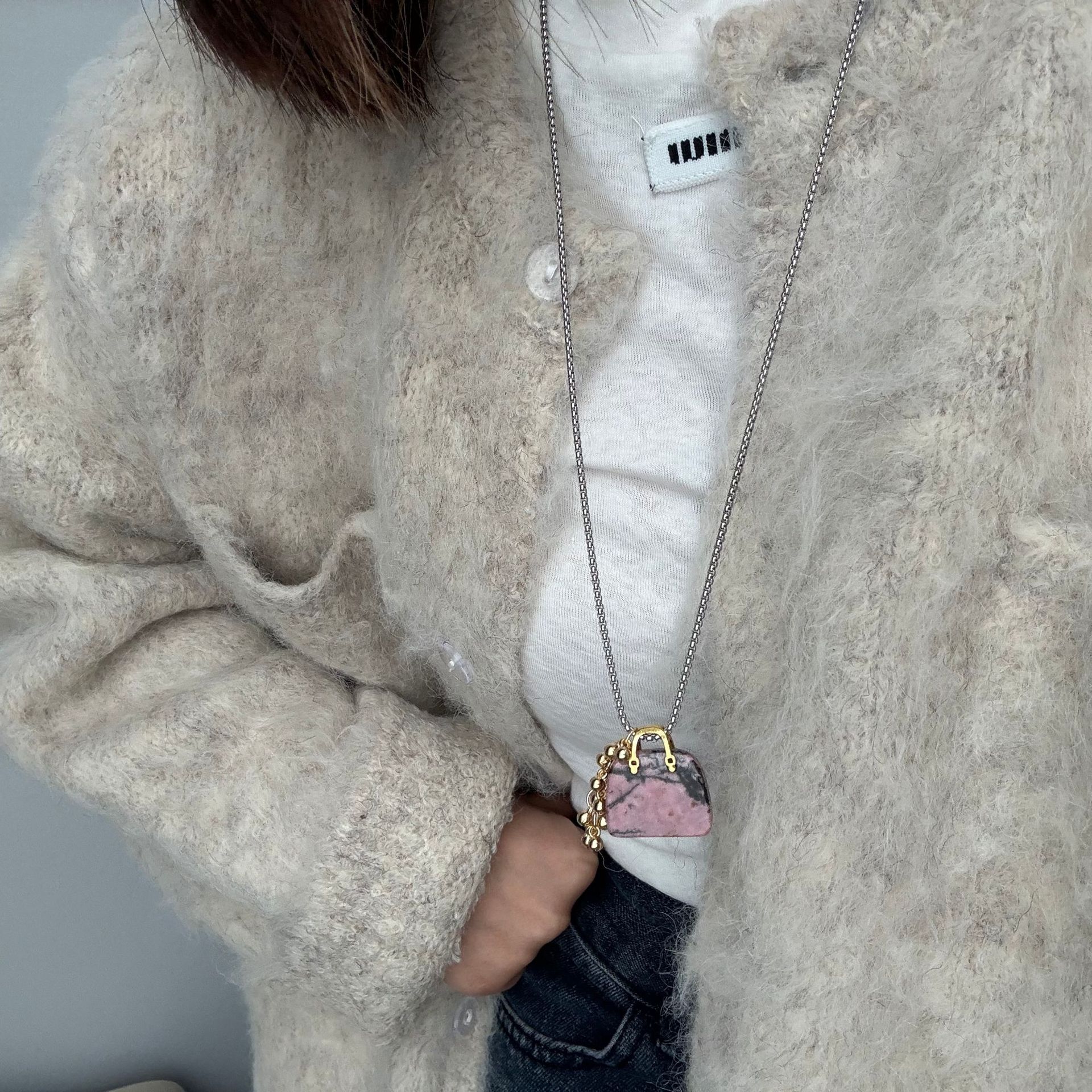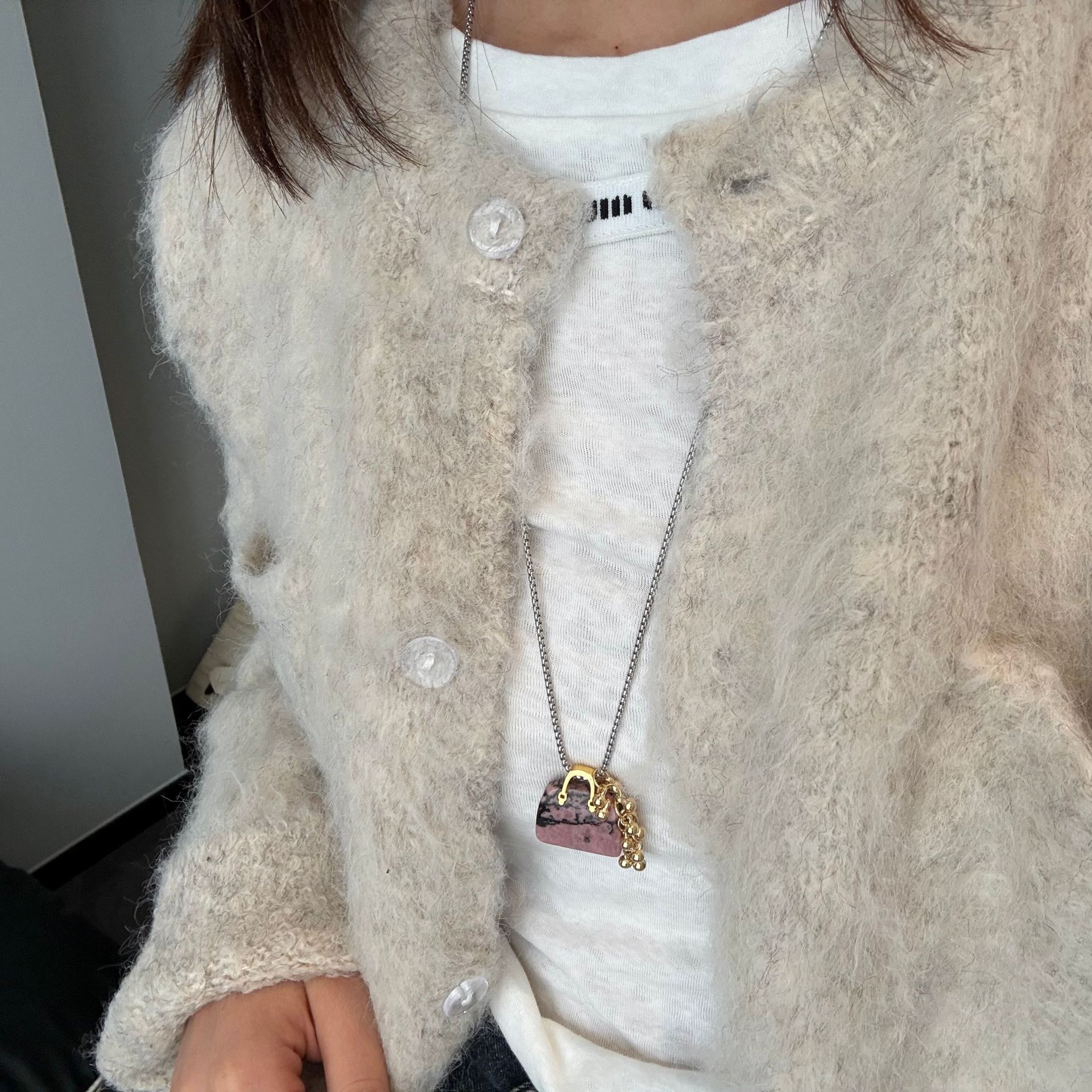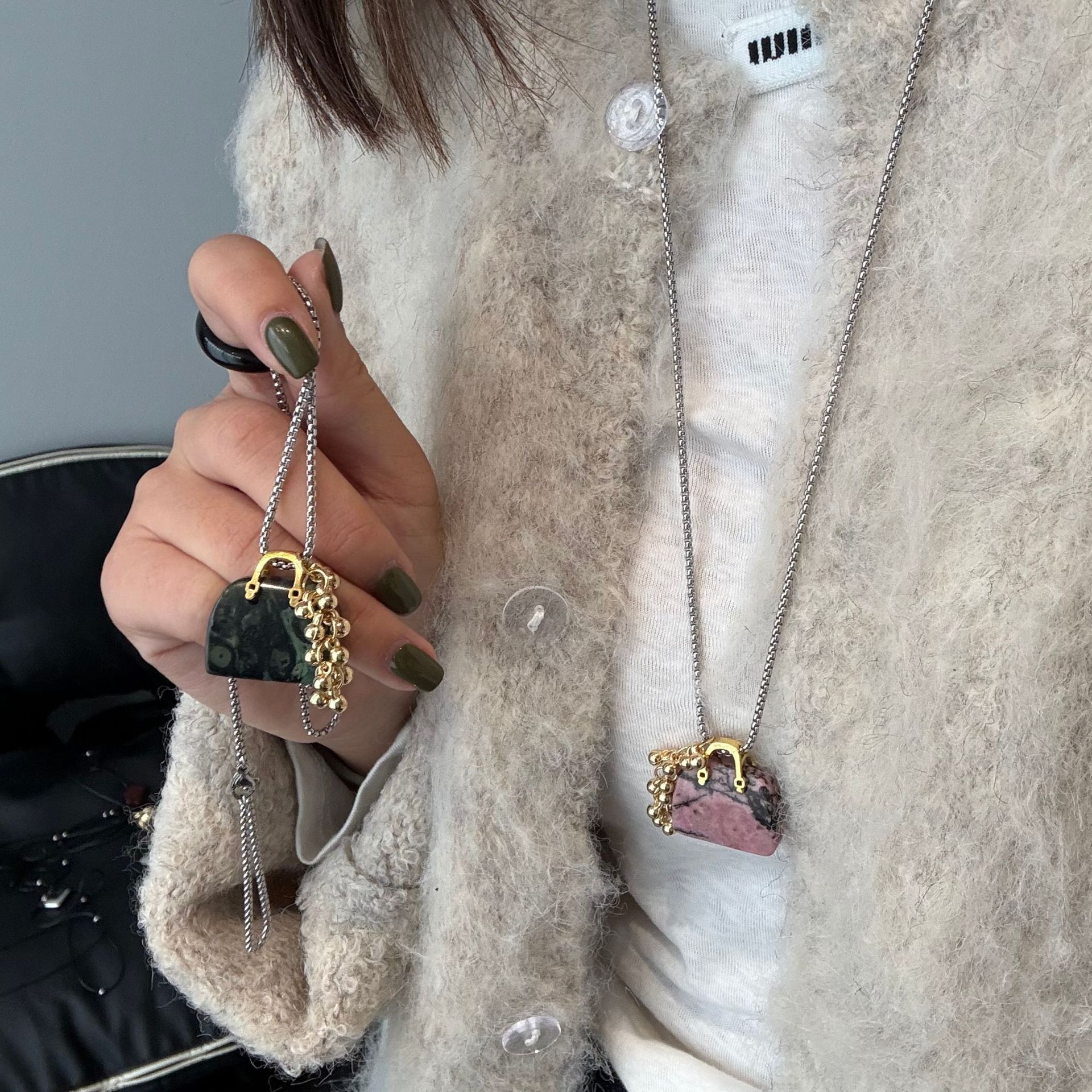 rose stone bag grape cluster necklace