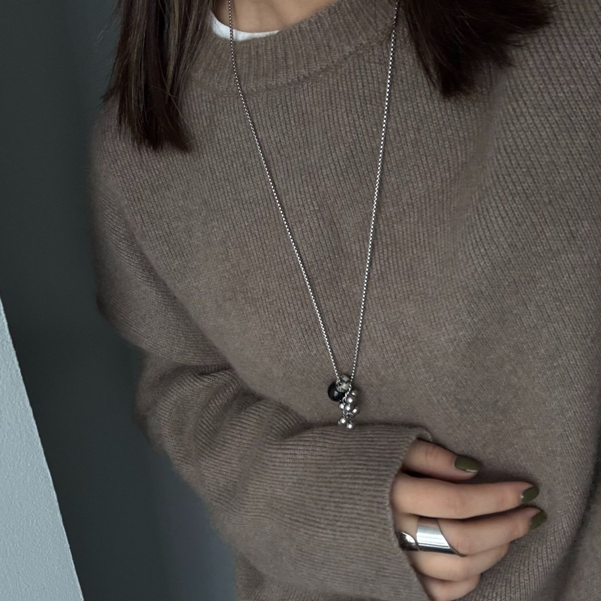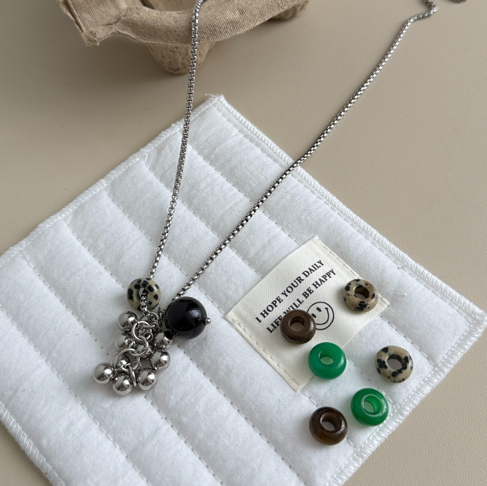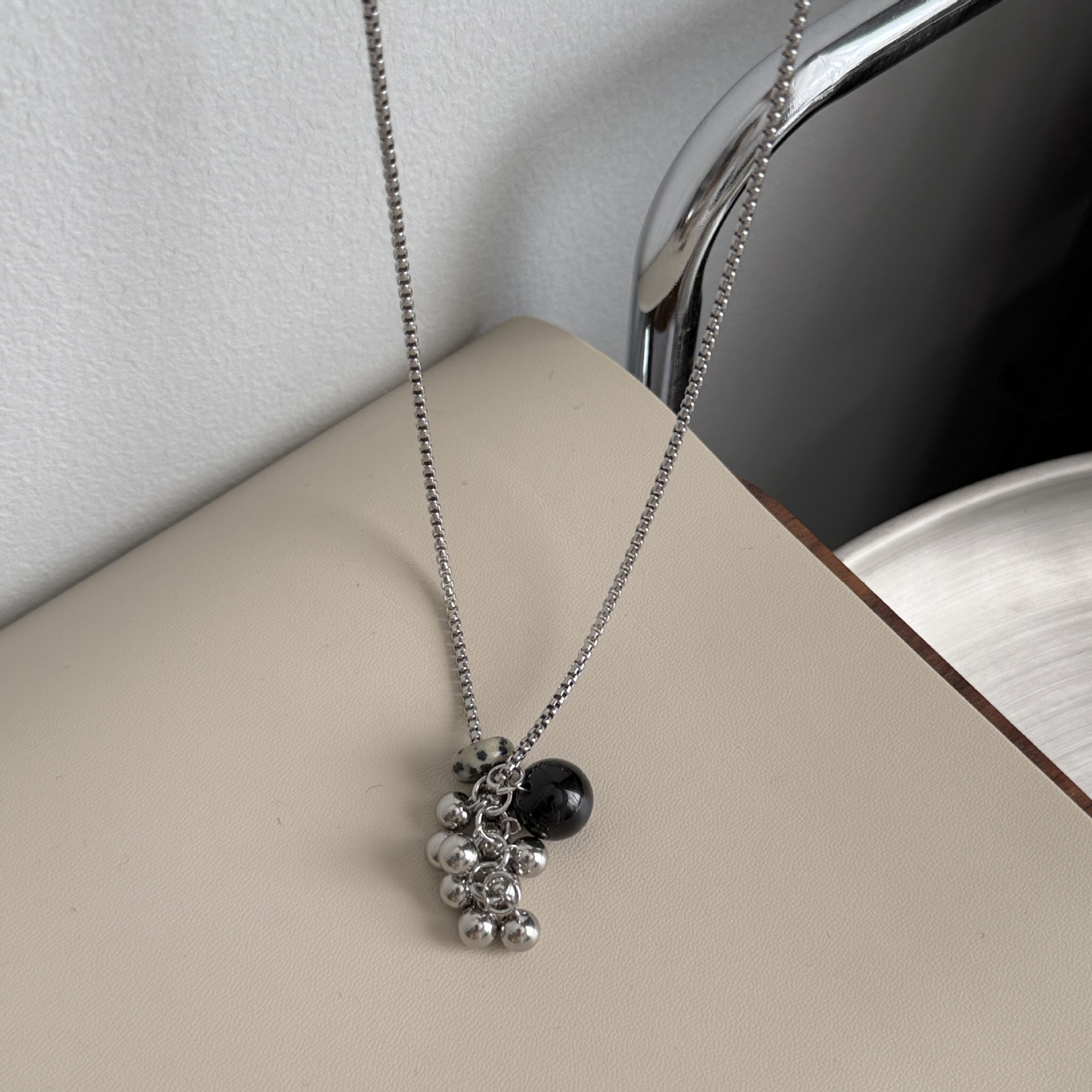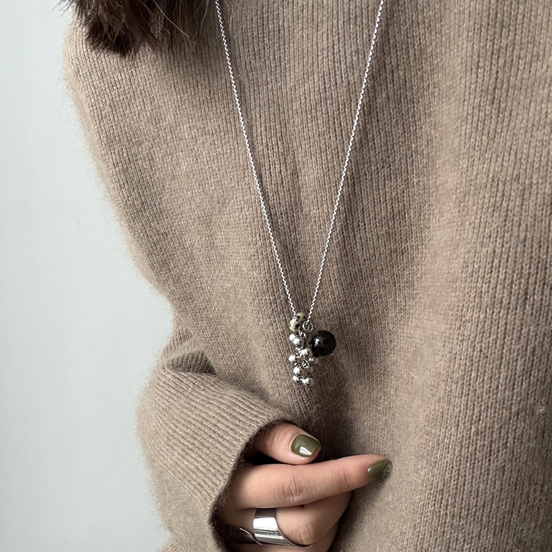 spotted stone steel grape cluster necklace