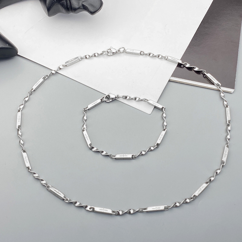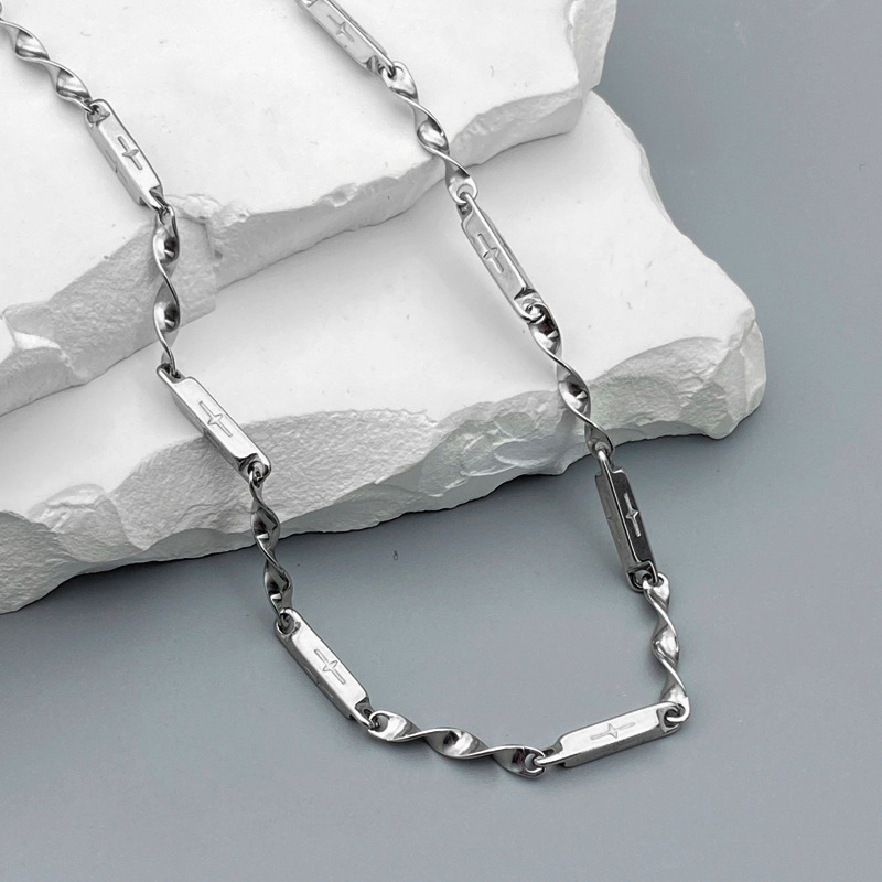 titanium steel cross bamboo twisted chain 60cm
