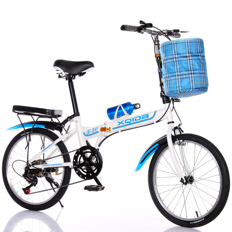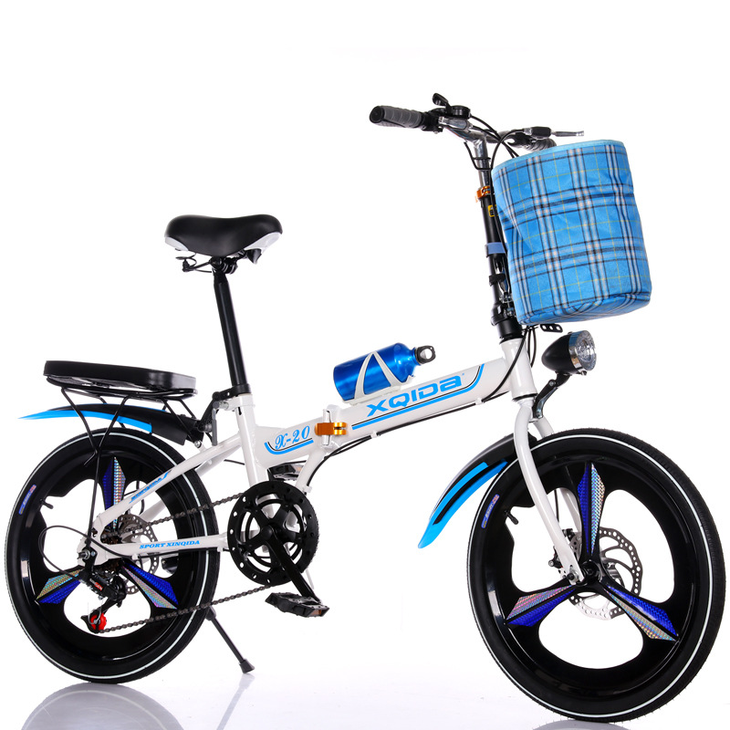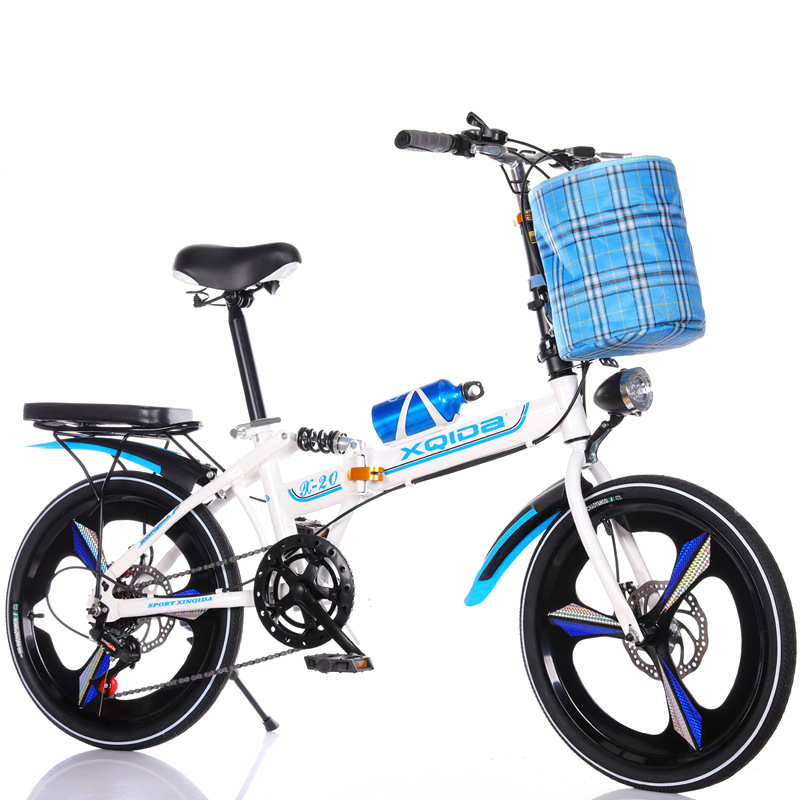 white and blue 20-inch variable speed brakes aluminum wheels + cloth basket bicycle bell kettle passenger cushion tool car lock tire pump