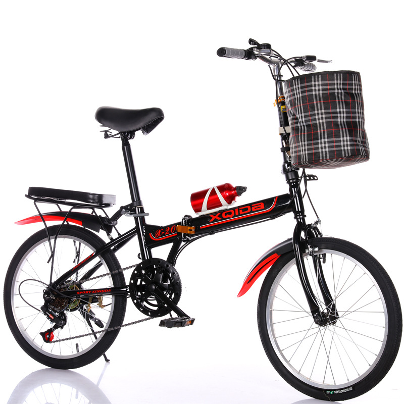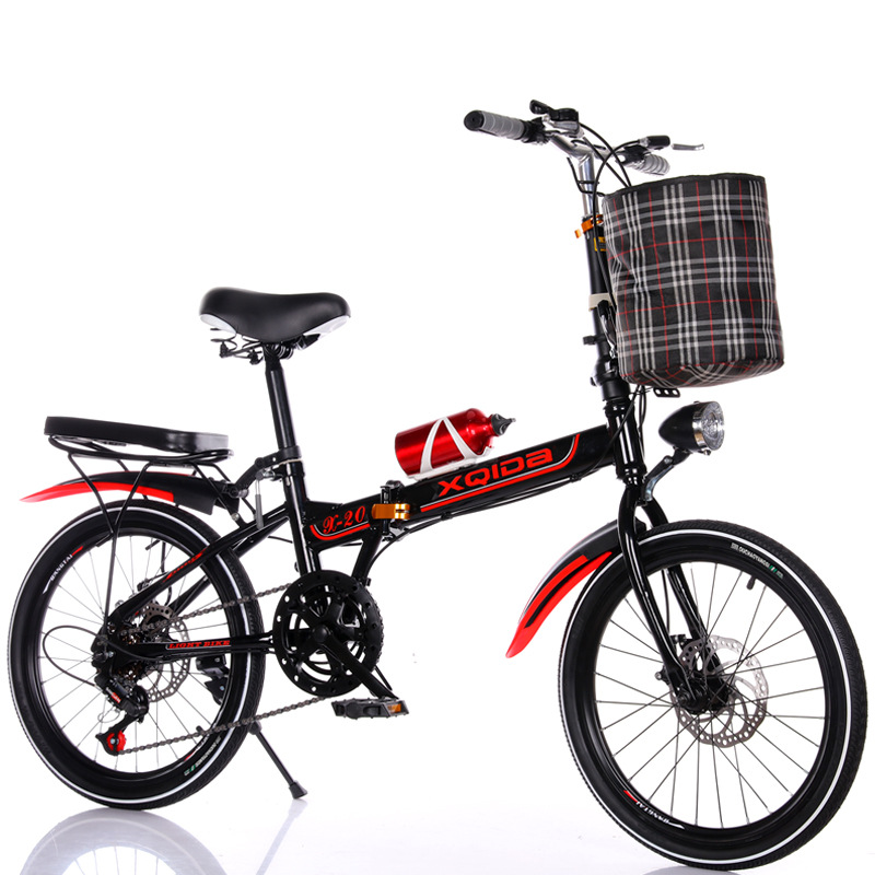 black and red 20-inch variable speed brakes aluminum wheels + cloth basket bicycle bell kettle passenger cushion tool car lock tire pump