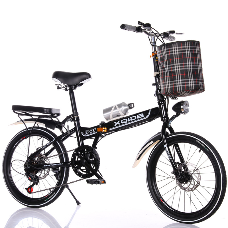 black and white 20-inch variable speed disc brake integrated wheel + cloth basket car light bicycle bell kettle passenger cushion tool car lock tire pump
