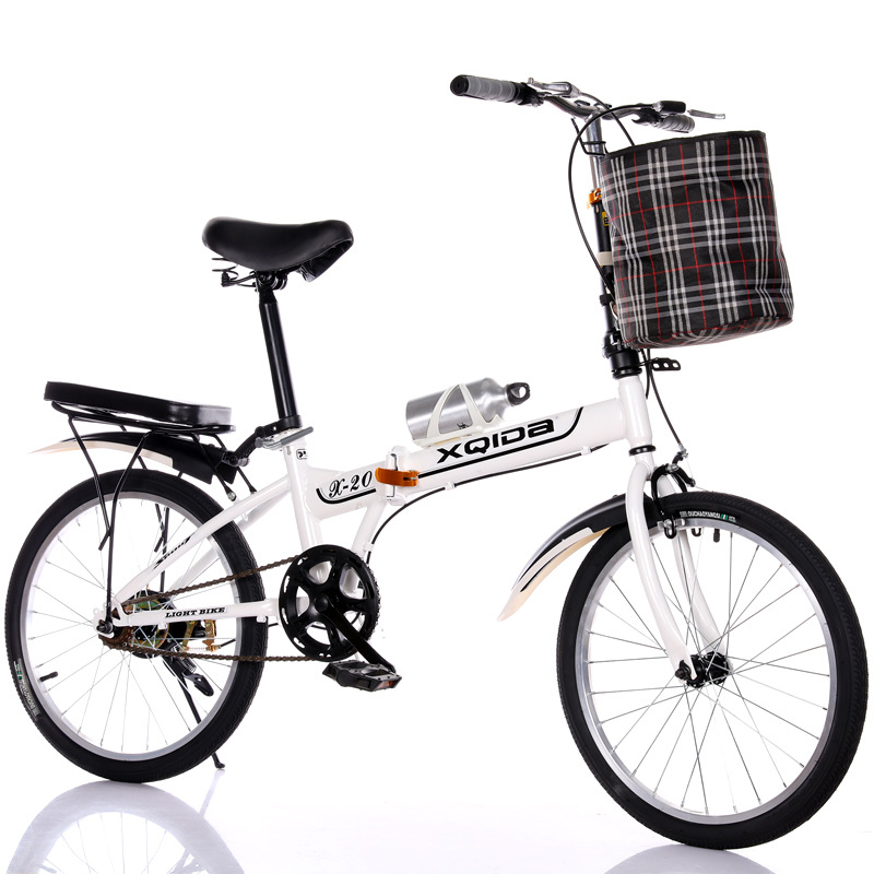 black and white 20-inch single speed brakes aluminum wheels + cloth basket bicycle bell kettle passenger cushion tool car lock tire pump