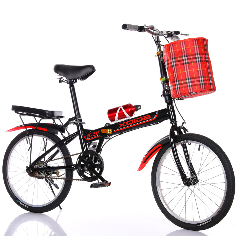 black and red 20-inch single speed brakes aluminum wheels + cloth basket bicycle bell kettle passenger cushion tool car lock tire pump