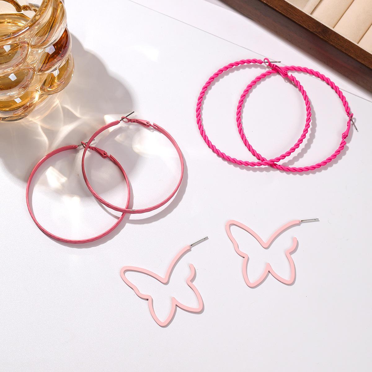 pink butterfly ear ring
