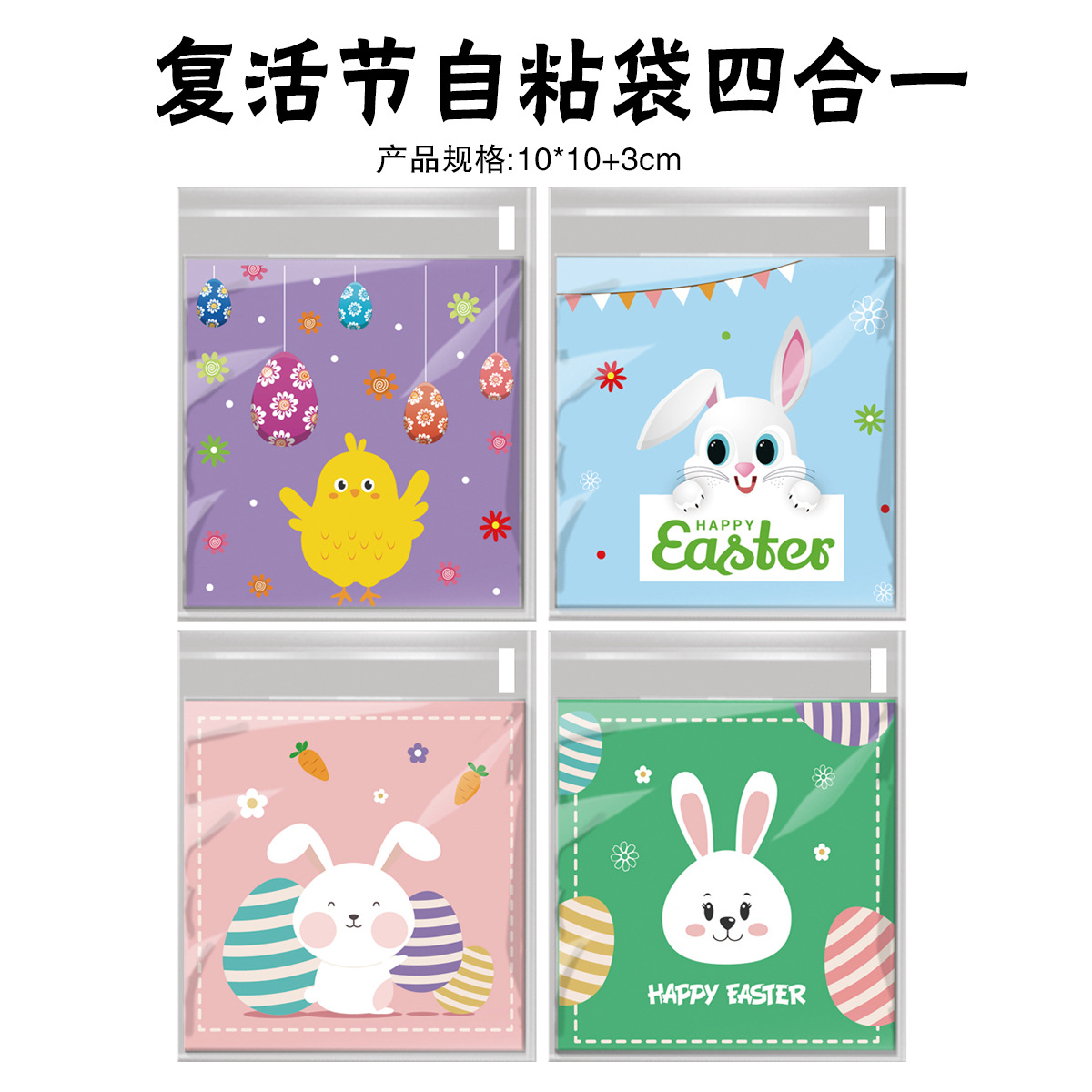 easter self-adhesive bag four-in-one (100 pcs);10*10 + 3cm; opp
