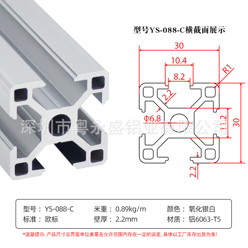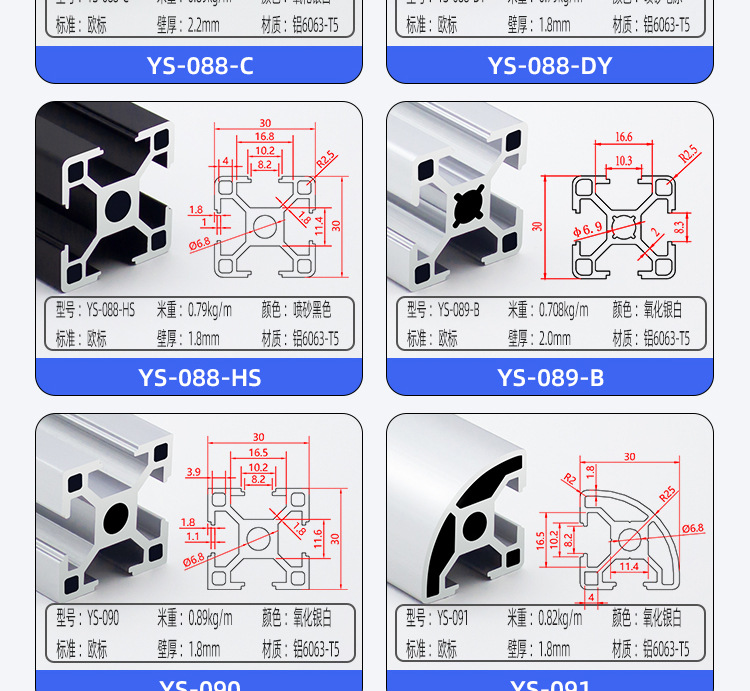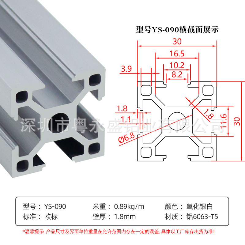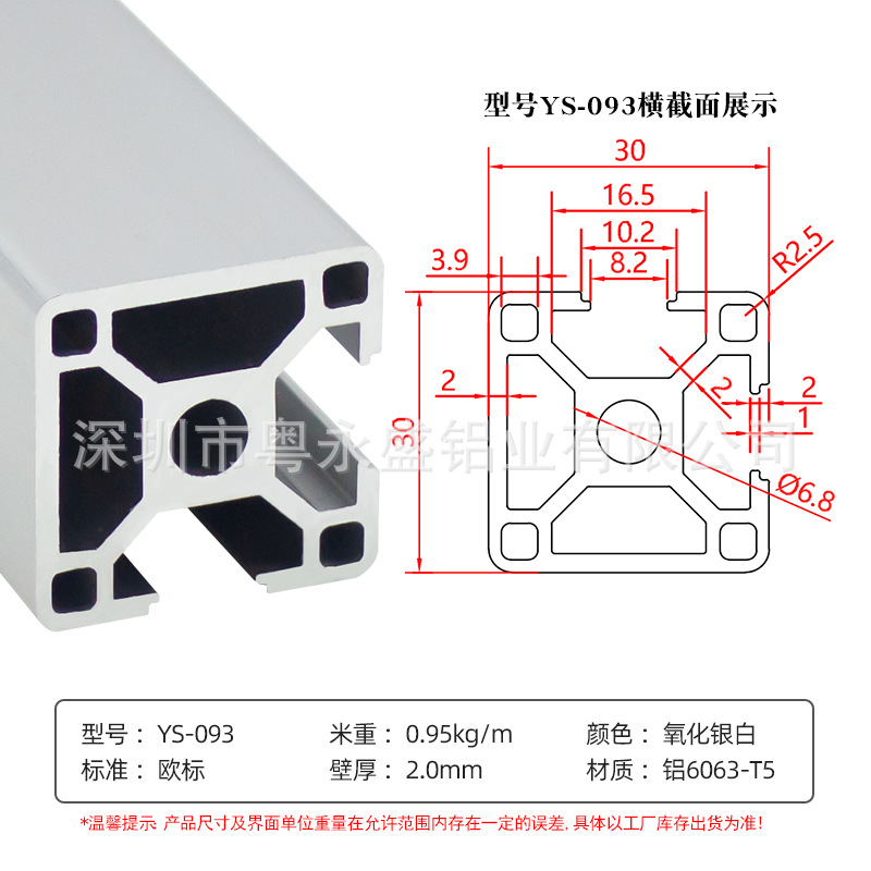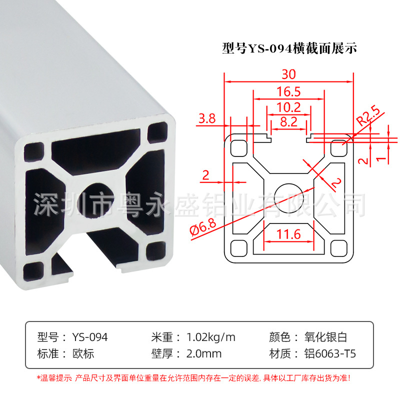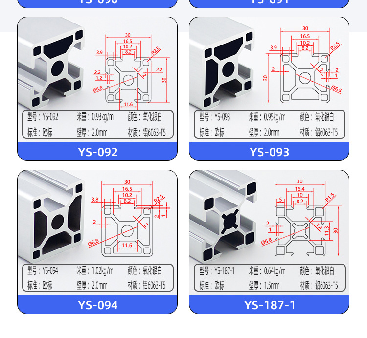 european standard: 3030-1.6 thick (silver white)