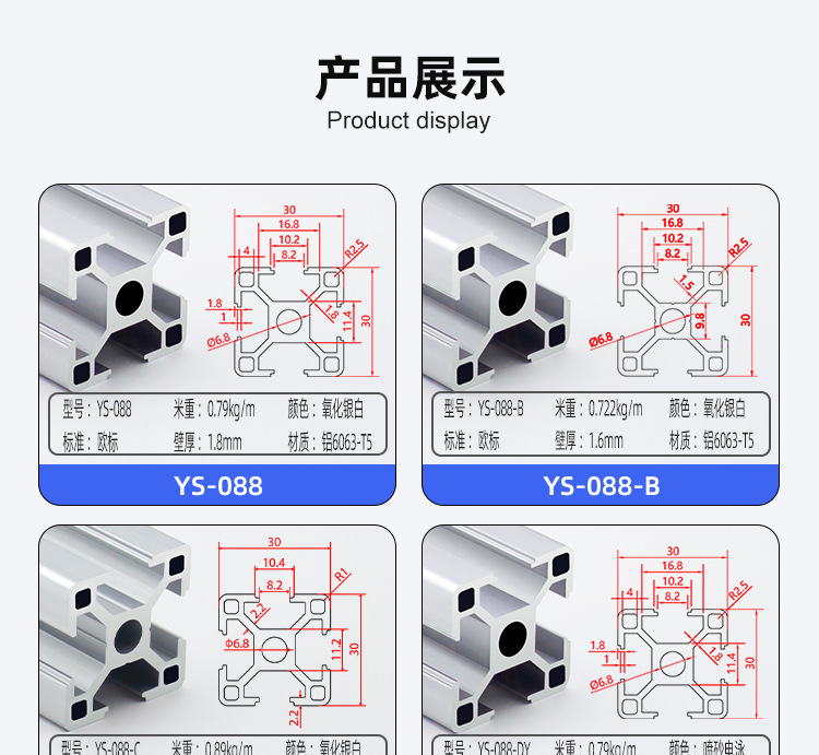 european standard: 3030-1.8 thick (silver white)