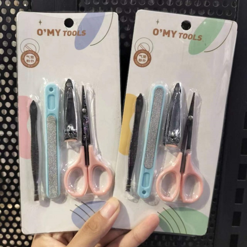 beauty tool combination eye tweezer nail file makeup scissors powder puff suit gadget combination 2 yuan store supply wholesale