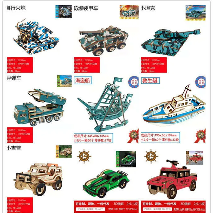 | laser cutting: pirate ship + rocket model car + hummer jeep | CN¥ 16.99 | 999999 piece available |