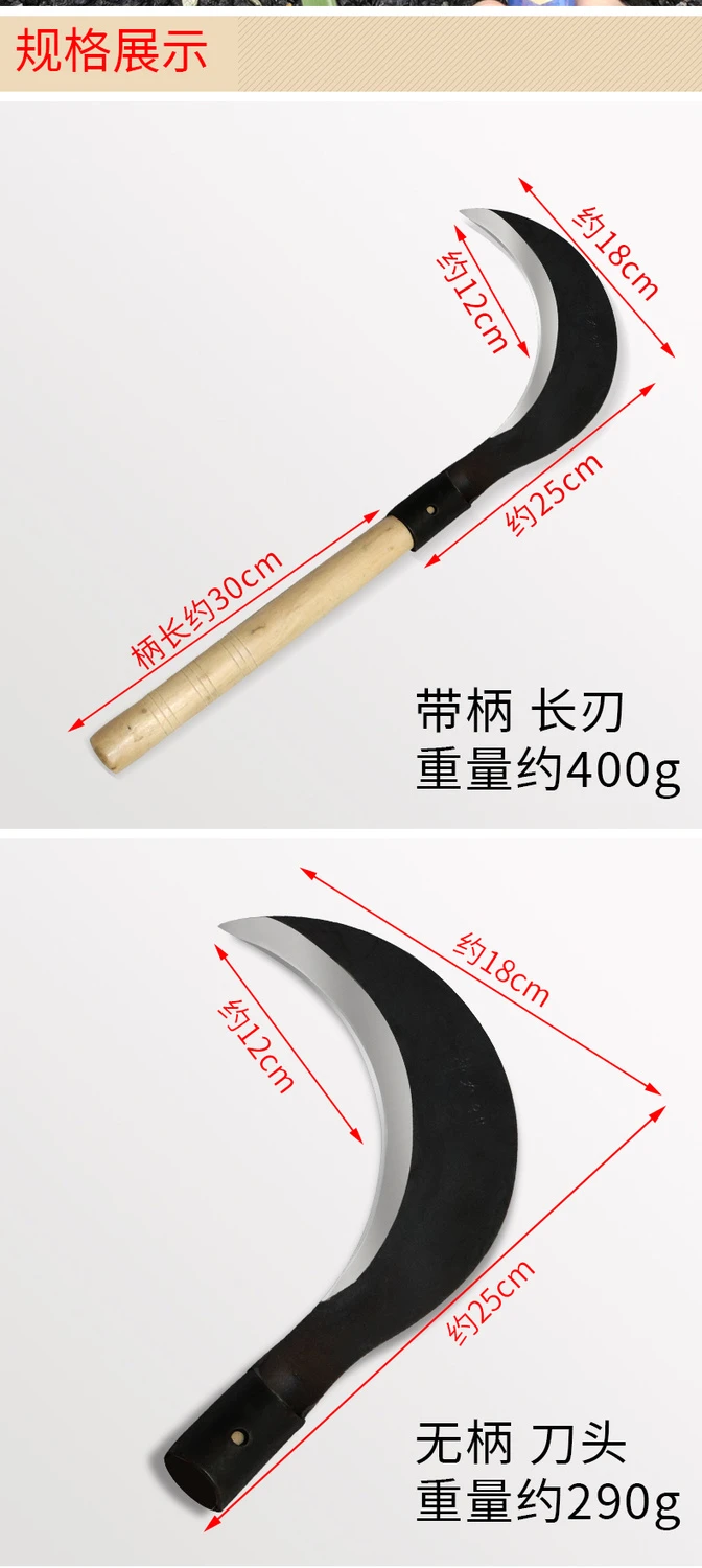 | branded steel sickle + 38cm spiral wood stick | CN¥ 17.33 | 999999 piece available |