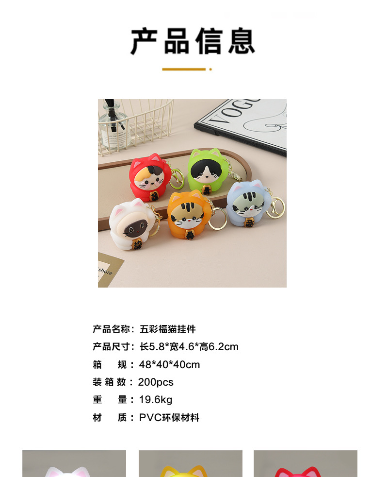 0316-1 colorful lucky cat pendant-white (length 5.8 * width 4.6 * height 6.2)