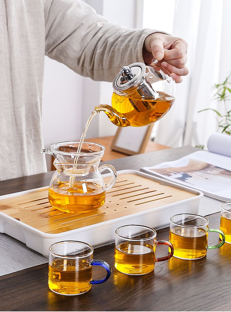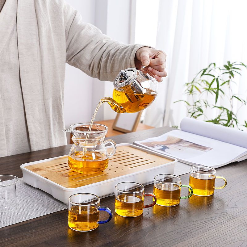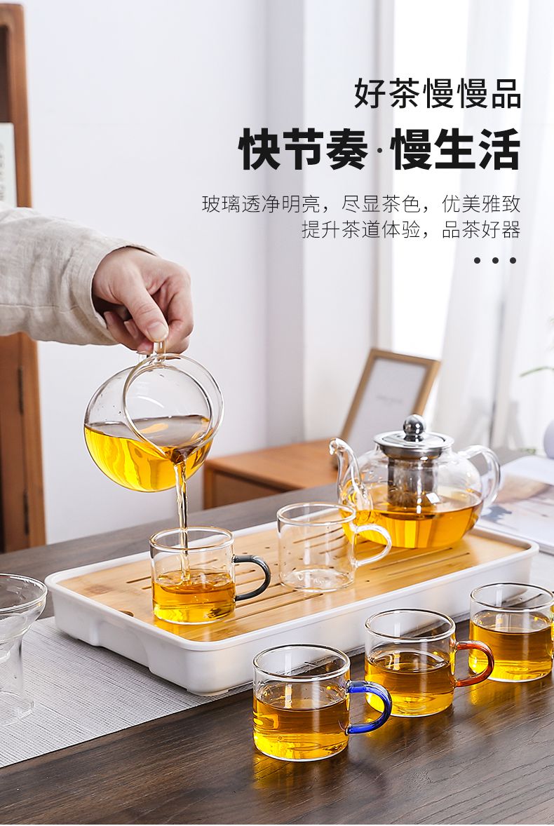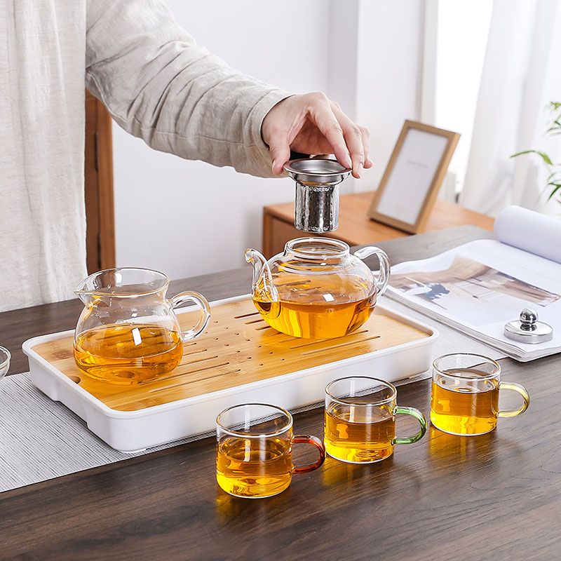 | steel leaking pot +4 color handle cups + small square white bottom tea tray | CN¥ 37.64 | 999999 piece available |