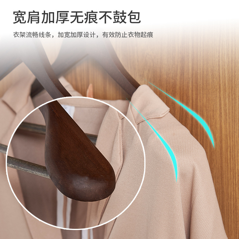 QiYuShi imitation antique windproof coat stand Multi-functional anti-skid invisible clothes hanger Wide-shouldered thick wooden clothes hanger
