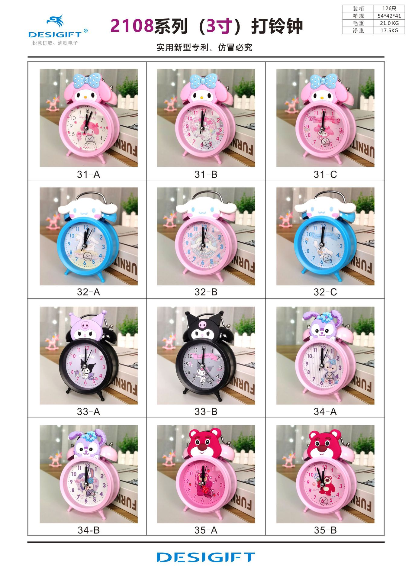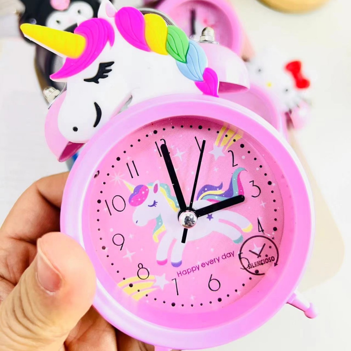 cross-border sanrio student alarm clock melody clow m strawberry bear cartoon children's 3-inch doll bell alarm clock