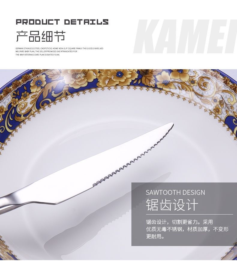 | 1 knife +1 fork +1 thickened tip spoon | CN¥ 21.82 | 999999 piece available |