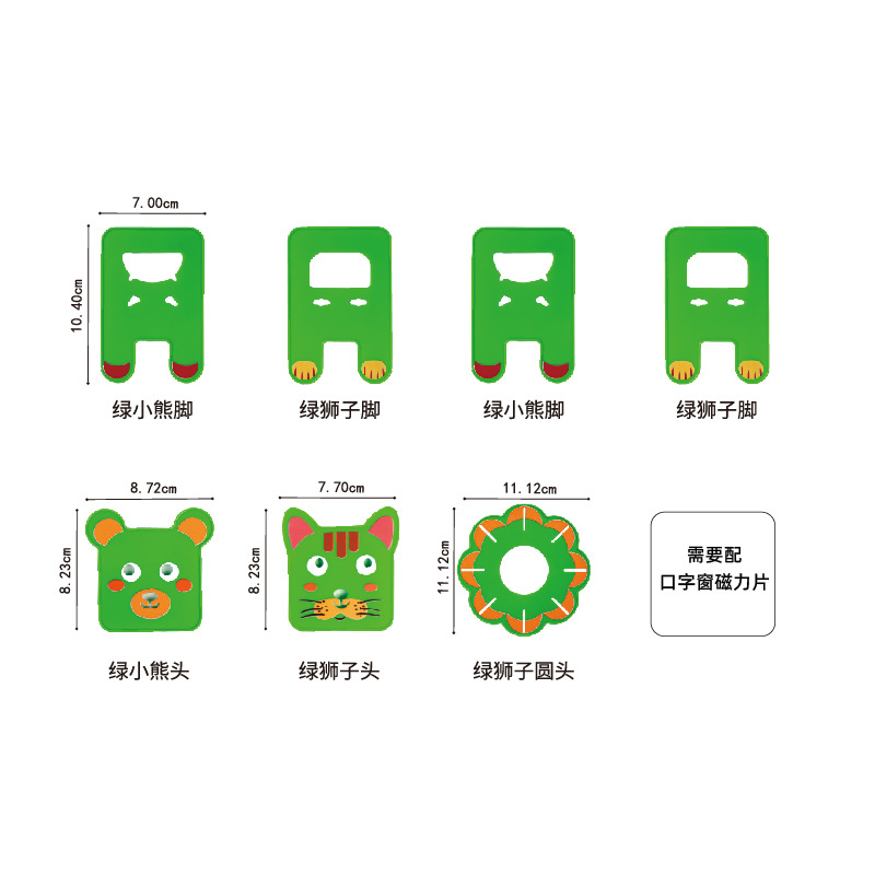 green 7 animals without magnetic card pieces per pack