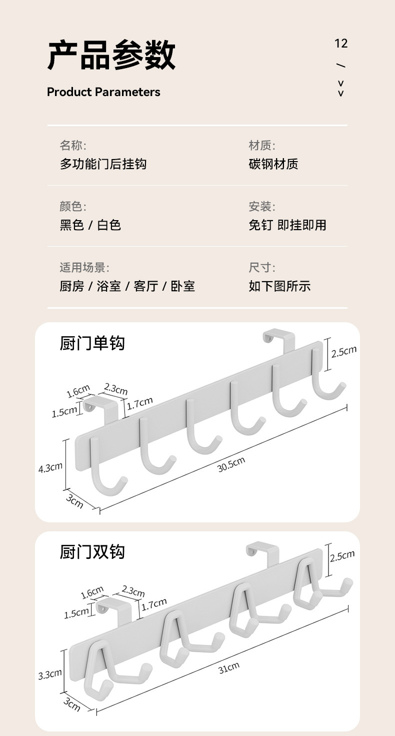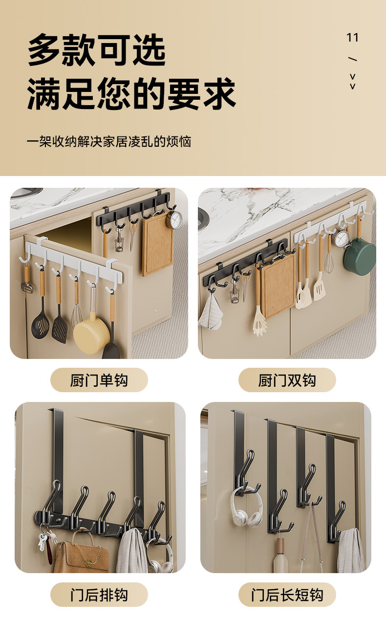kitchen rail multi-functional punch-free wall hanging cabinet door rear kitchenware storage storage rack wall row hooks customization