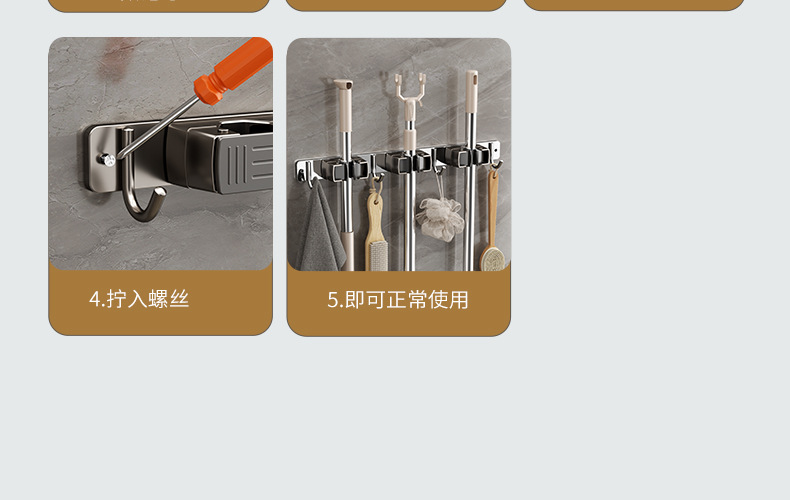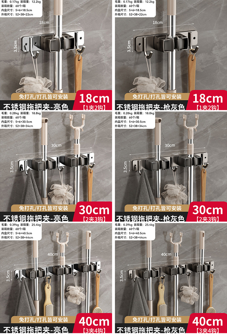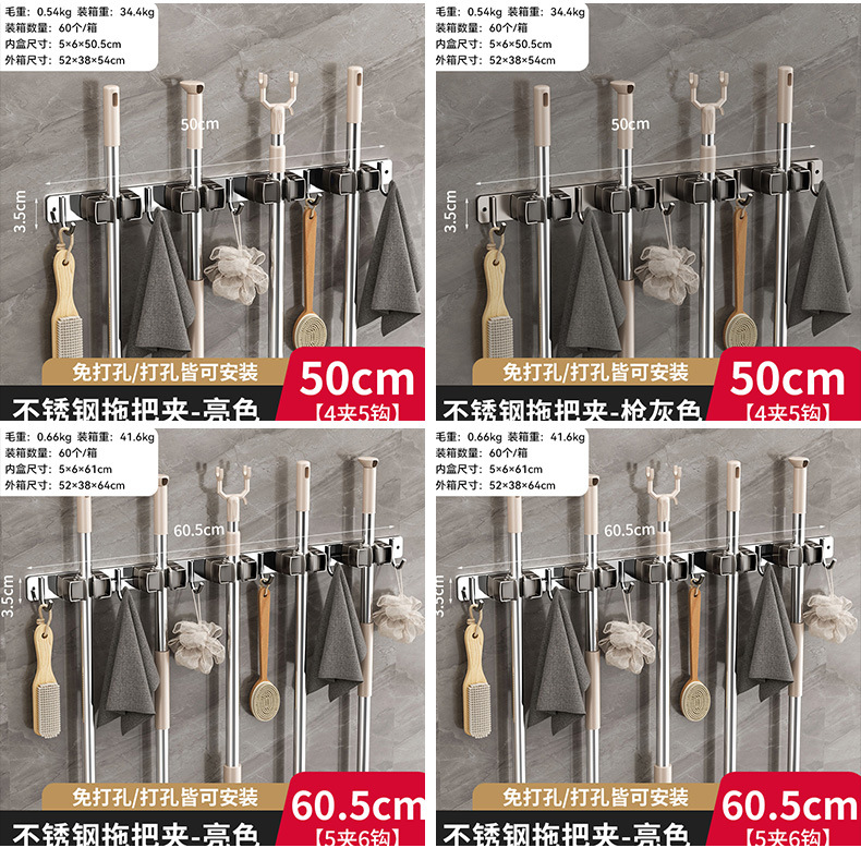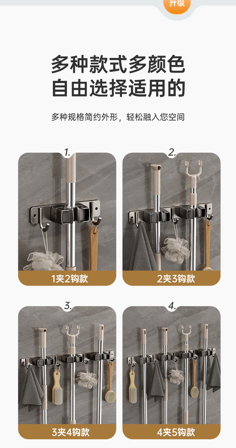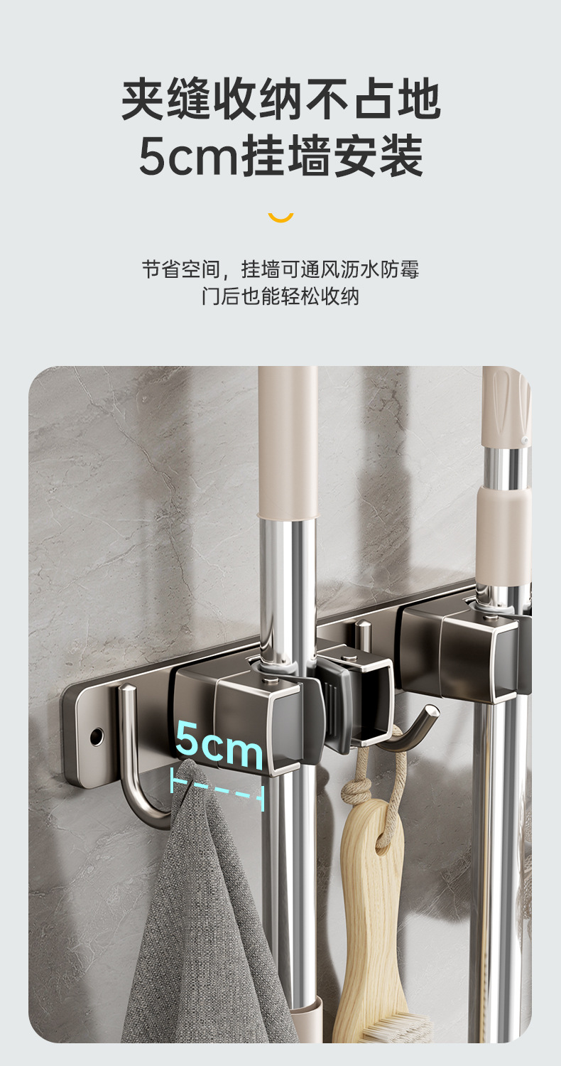 domestic toilet mop clip nail-free wall hanging storage clip bathroom stainless steel silicone non-slip mop rack