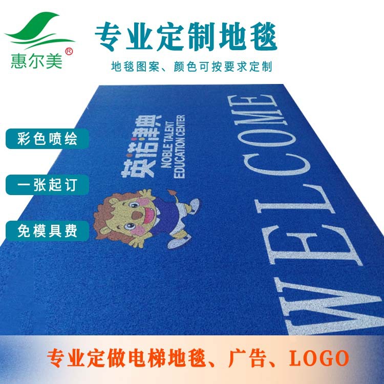 Powerful functionality, comfortable foot sensation, quick and convenient cleaning, one-time printing, no need to create molds. Choose from a variety of high-quality materials to print any content on your carpet. Add excitement to your life, high-end and luxurious, only what you think of, nothing we can't do, high quality, Huermei. Suitable for hotels, shopping malls, brand stores, high-end residential projects. Company promotion.