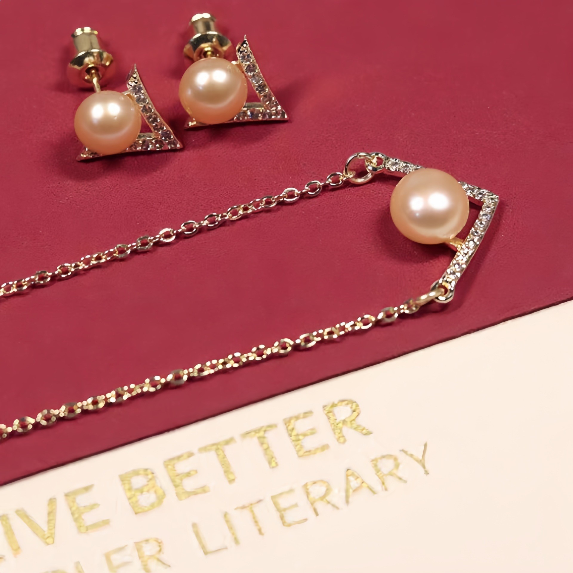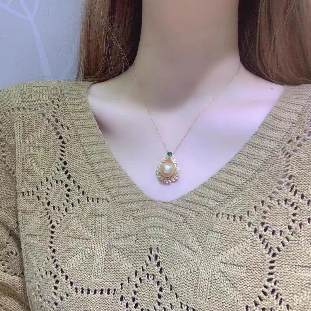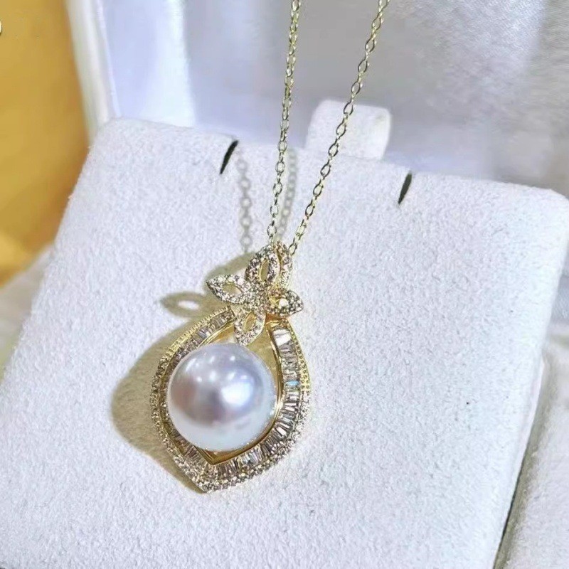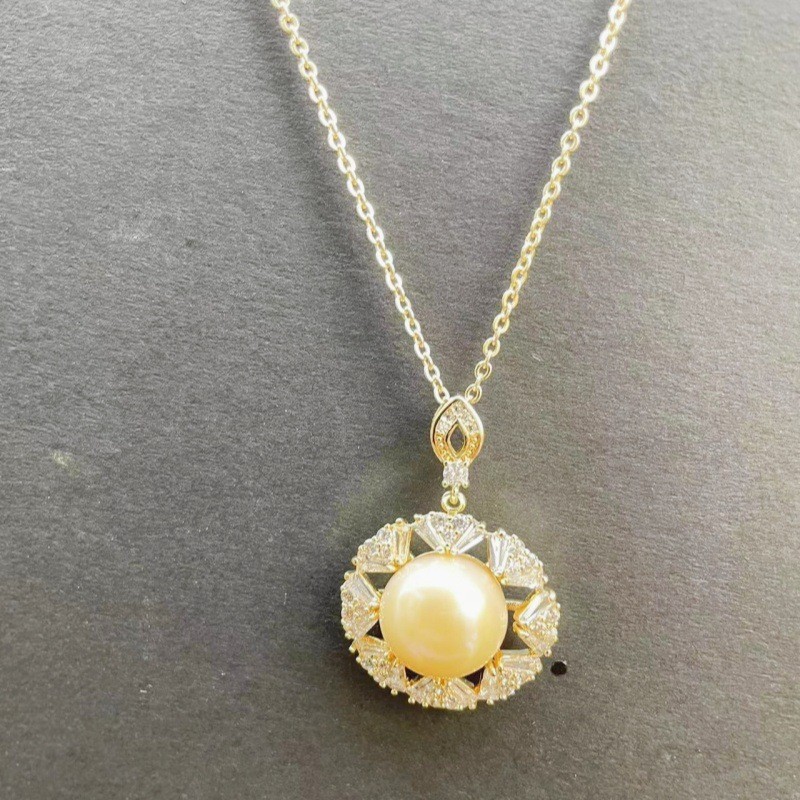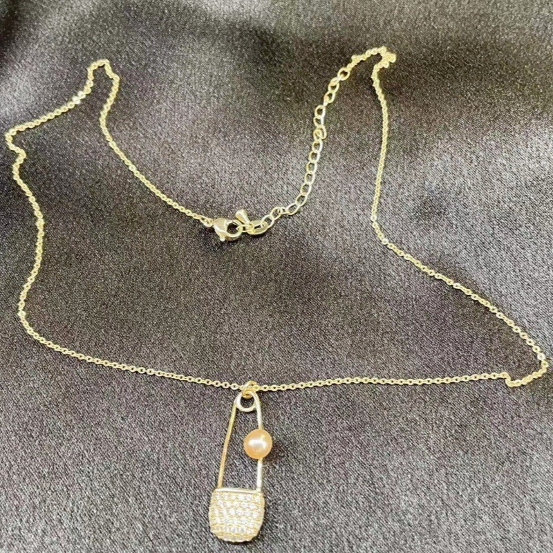 gold shiny diamond pendant pearl necklace