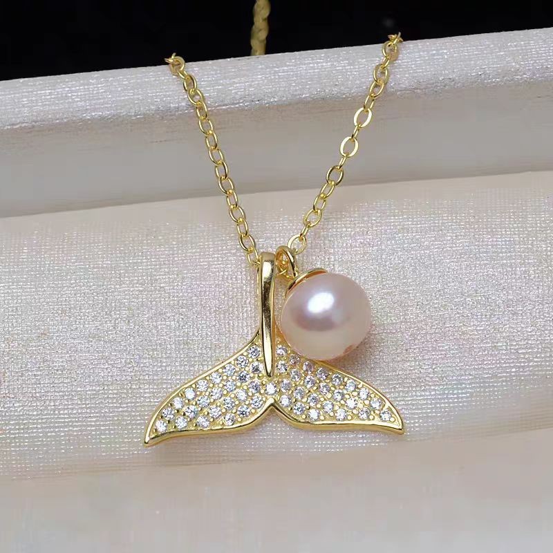 gold fishtail freshwater pearl pendant necklace