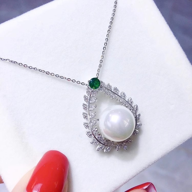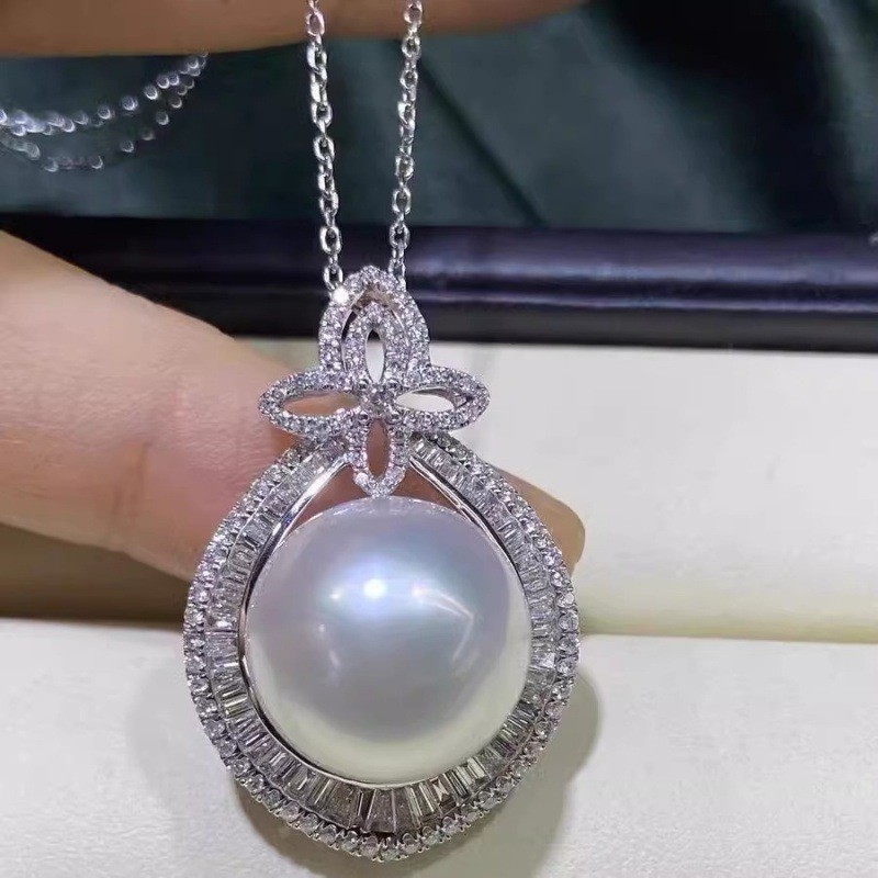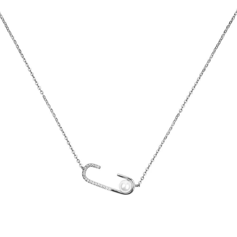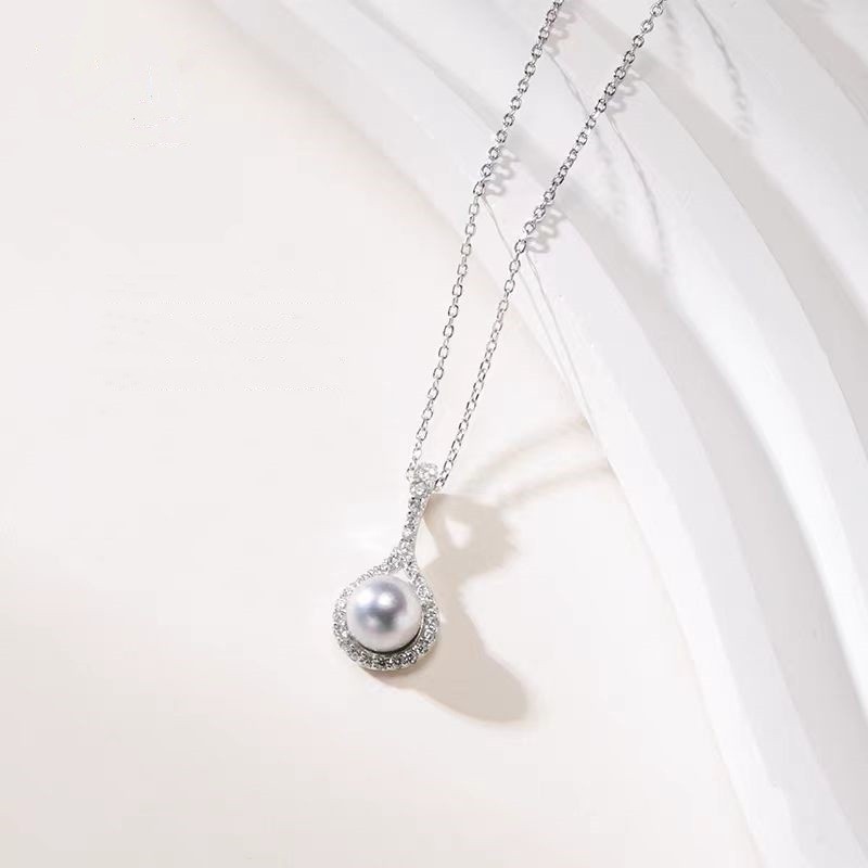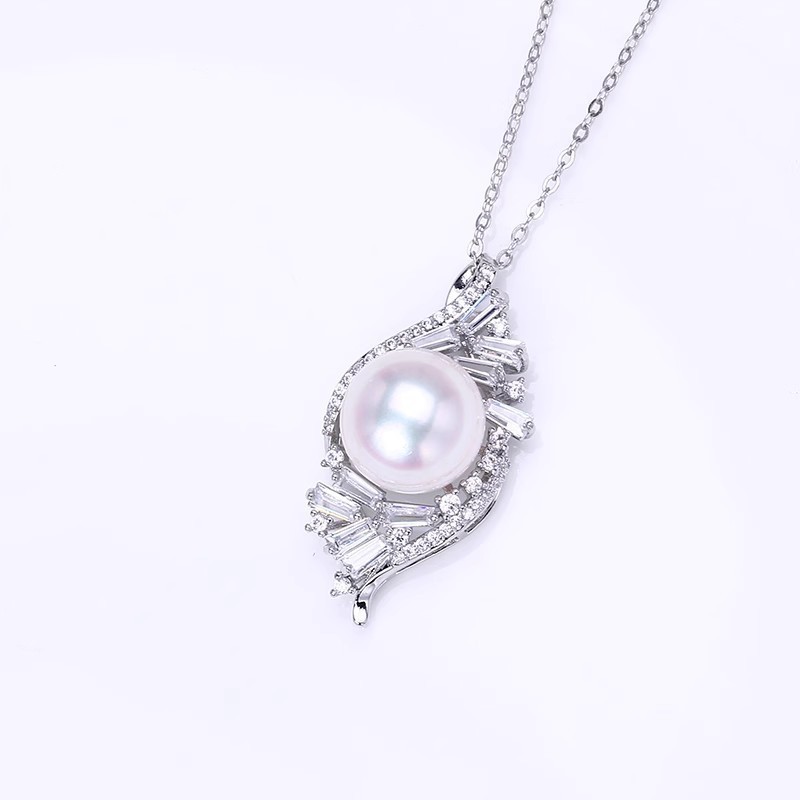 silver shining diamond zircon pearl pendant necklace