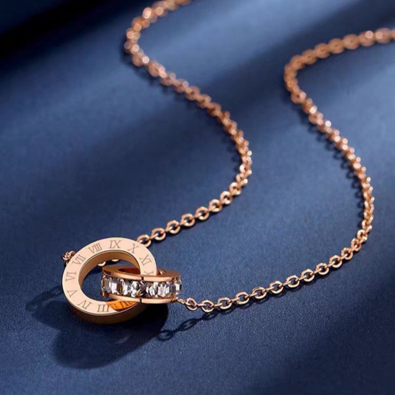 rose gold double ring pendant necklace