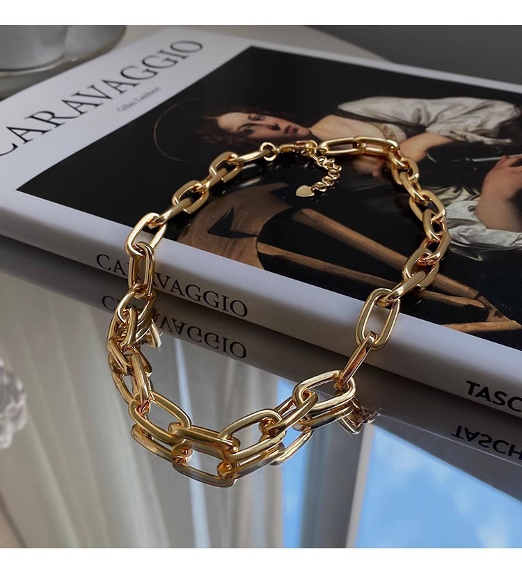 exaggerated golden clavicle chain