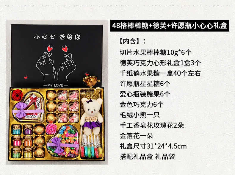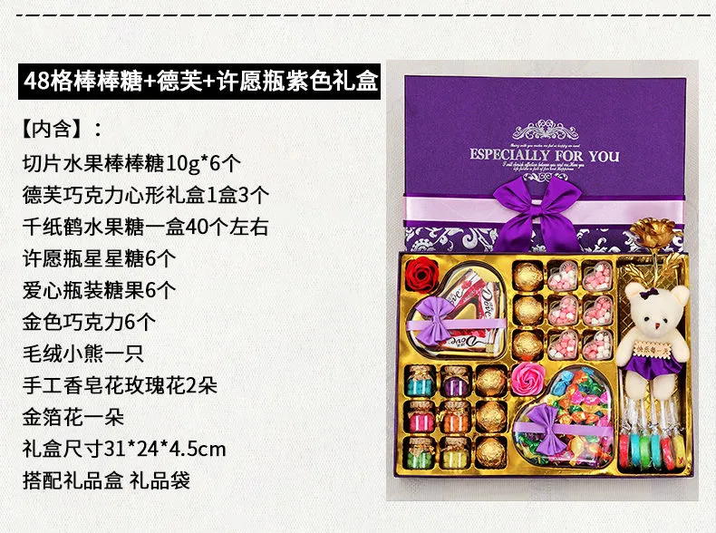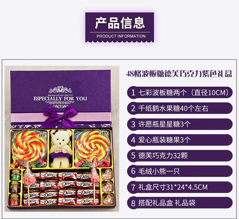 | 48-grid lollipop + dove + wishing bottle purple gift box | CN¥ 44.23 | 999999 piece available |