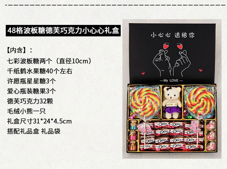 | 48-grid lollipop + dove + wishing bottle pink gift box | CN¥ 44.23 | 999999 piece available |