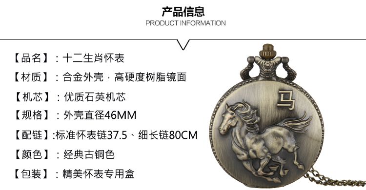 | zodiac pocket watch horse | CN¥ 16.99 | 999999 piece available |