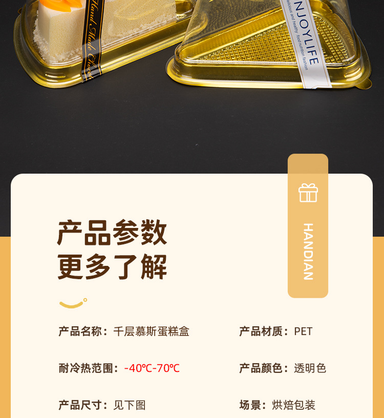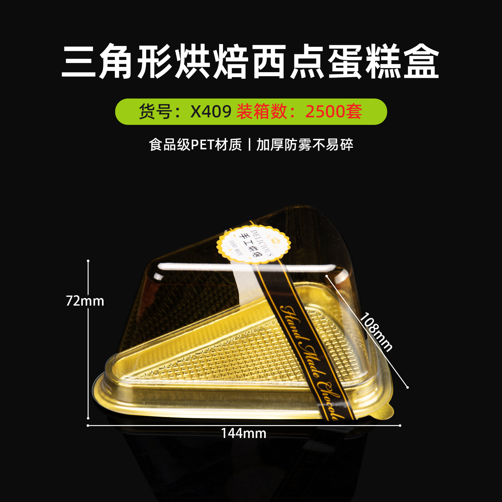 gold; 8-inch triangle gold cake box (without stickers); 2500 sets in the whole box