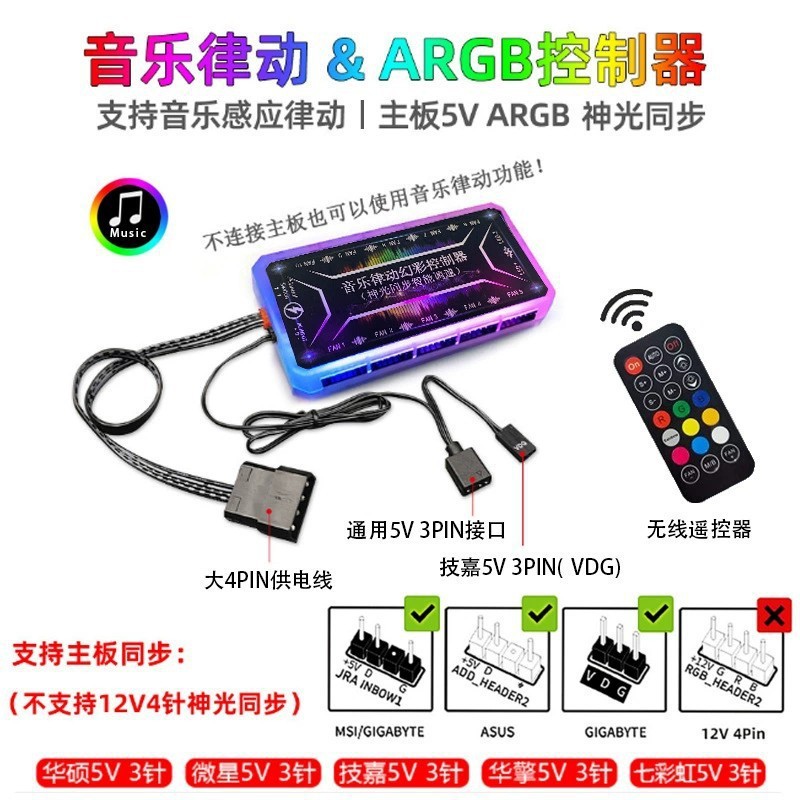luminous music controller [5v motherboard synchronization + music rhythm] + remote control