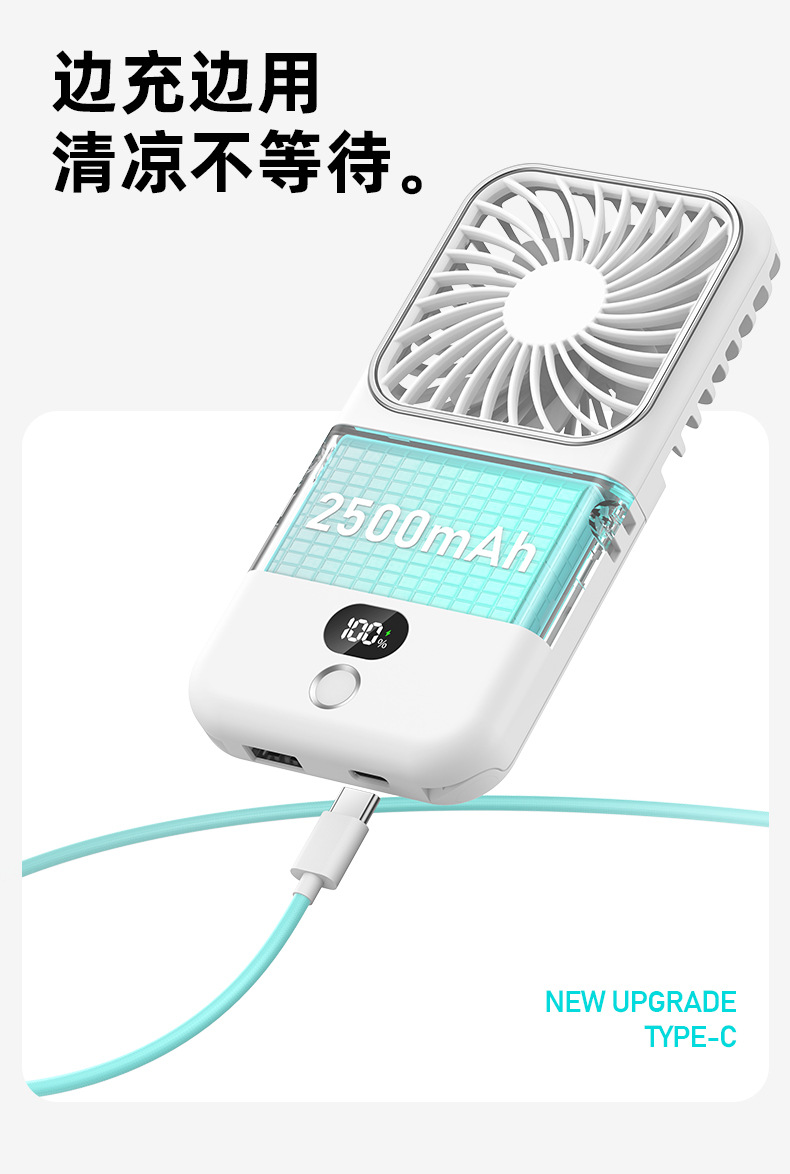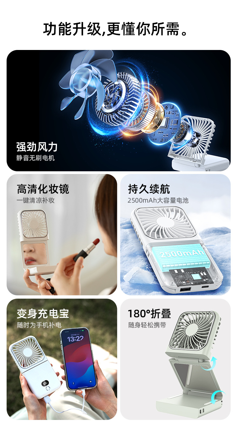 new halter little fan portable usb charging mobile phone holder makeup mirror power bank multifunctional little fan