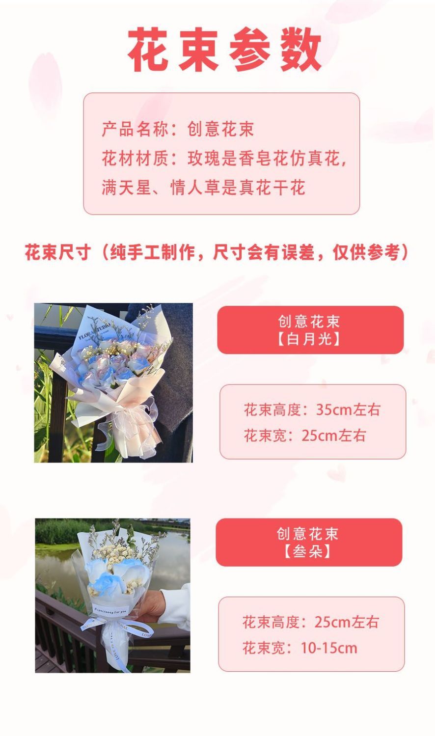 | creative bouquet + gift bag + lighting chain [value recommend]] | CN¥ 49.46 | 999999 piece available |