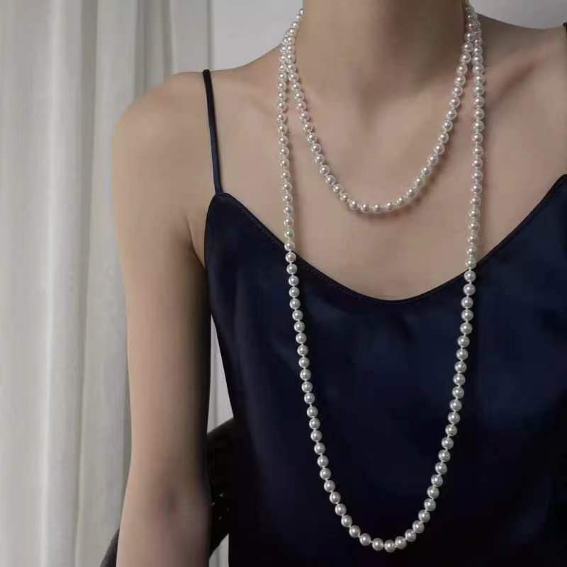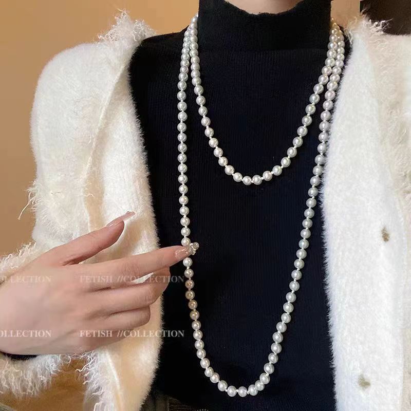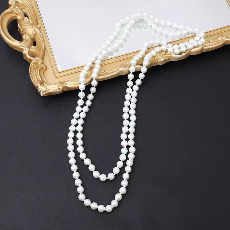e3165 white beads long sweater chain