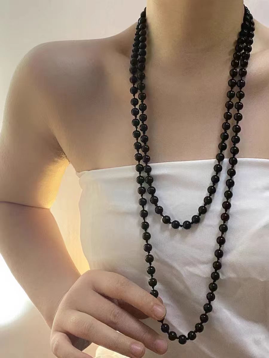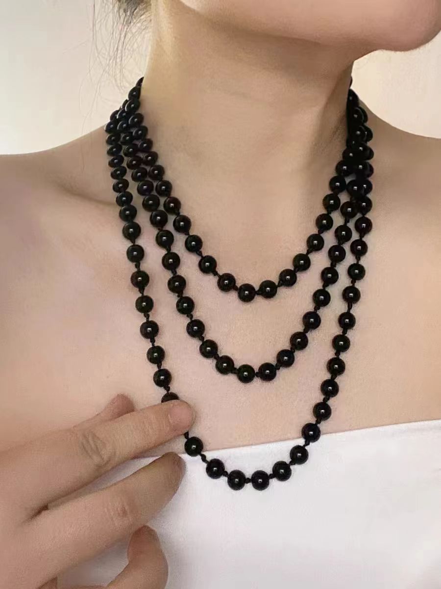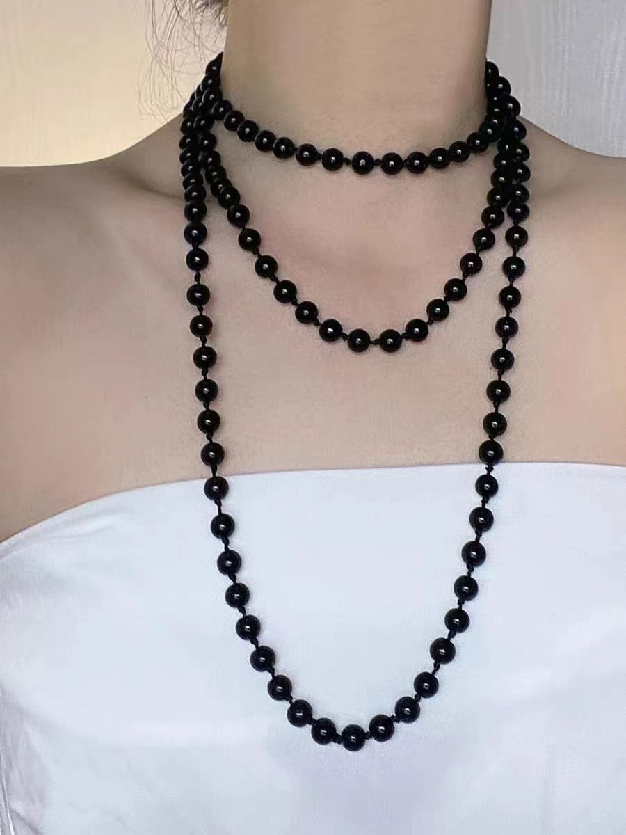 e black beads long sweater chain