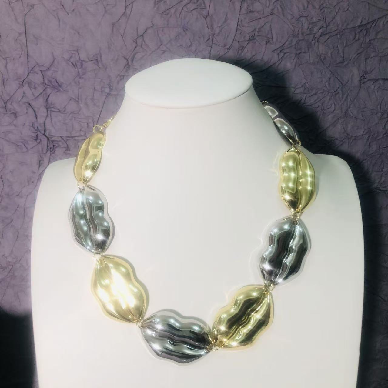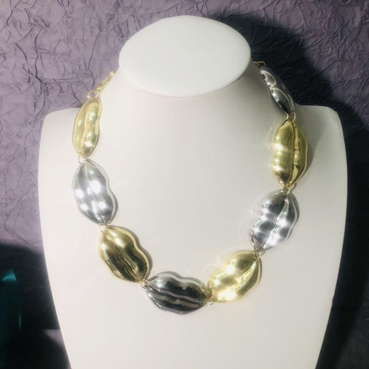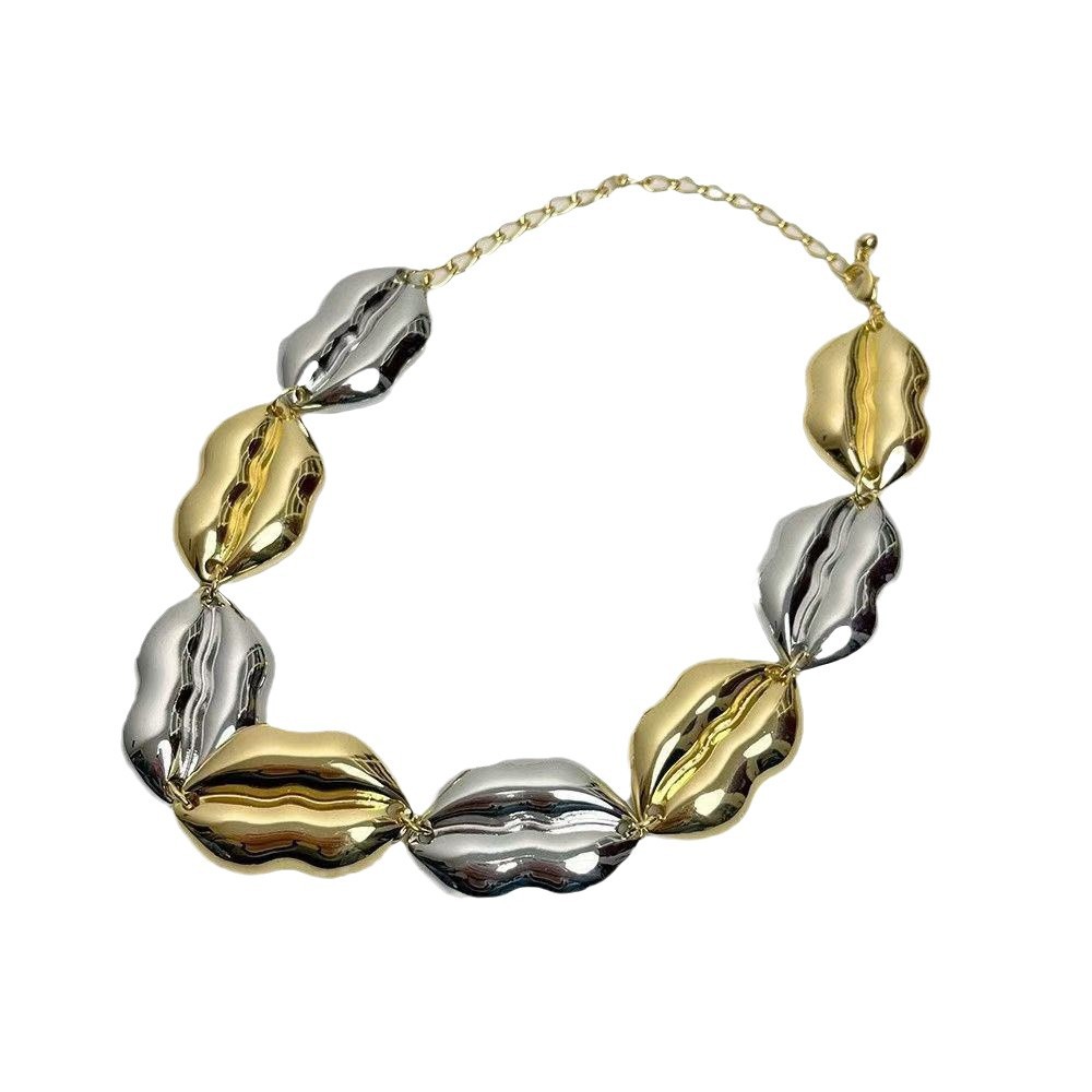 00328 gold silver mix mouth necklace