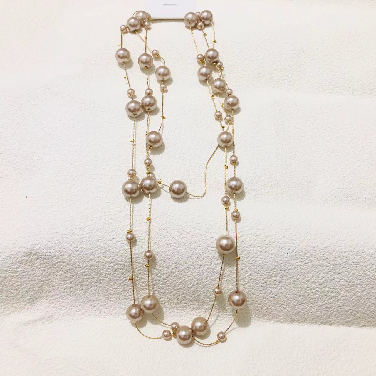 e650 champagne beads long sweater chain