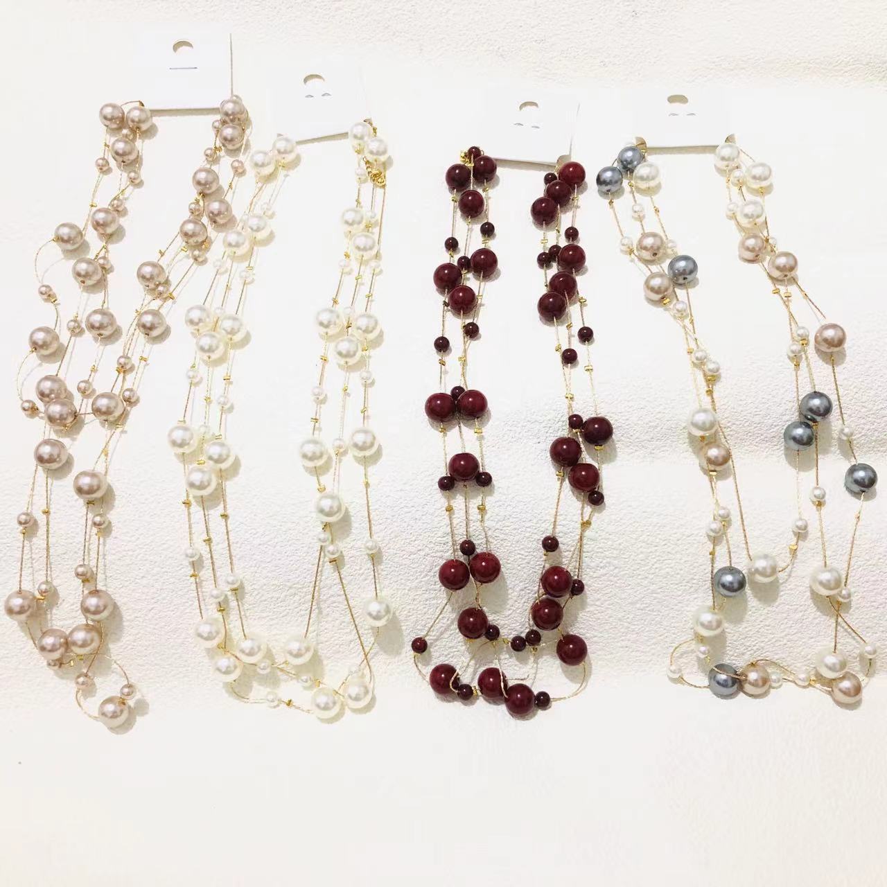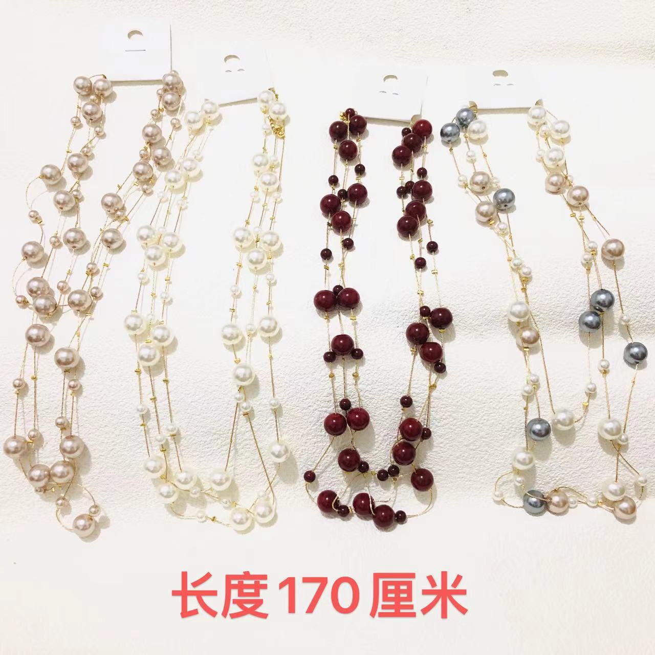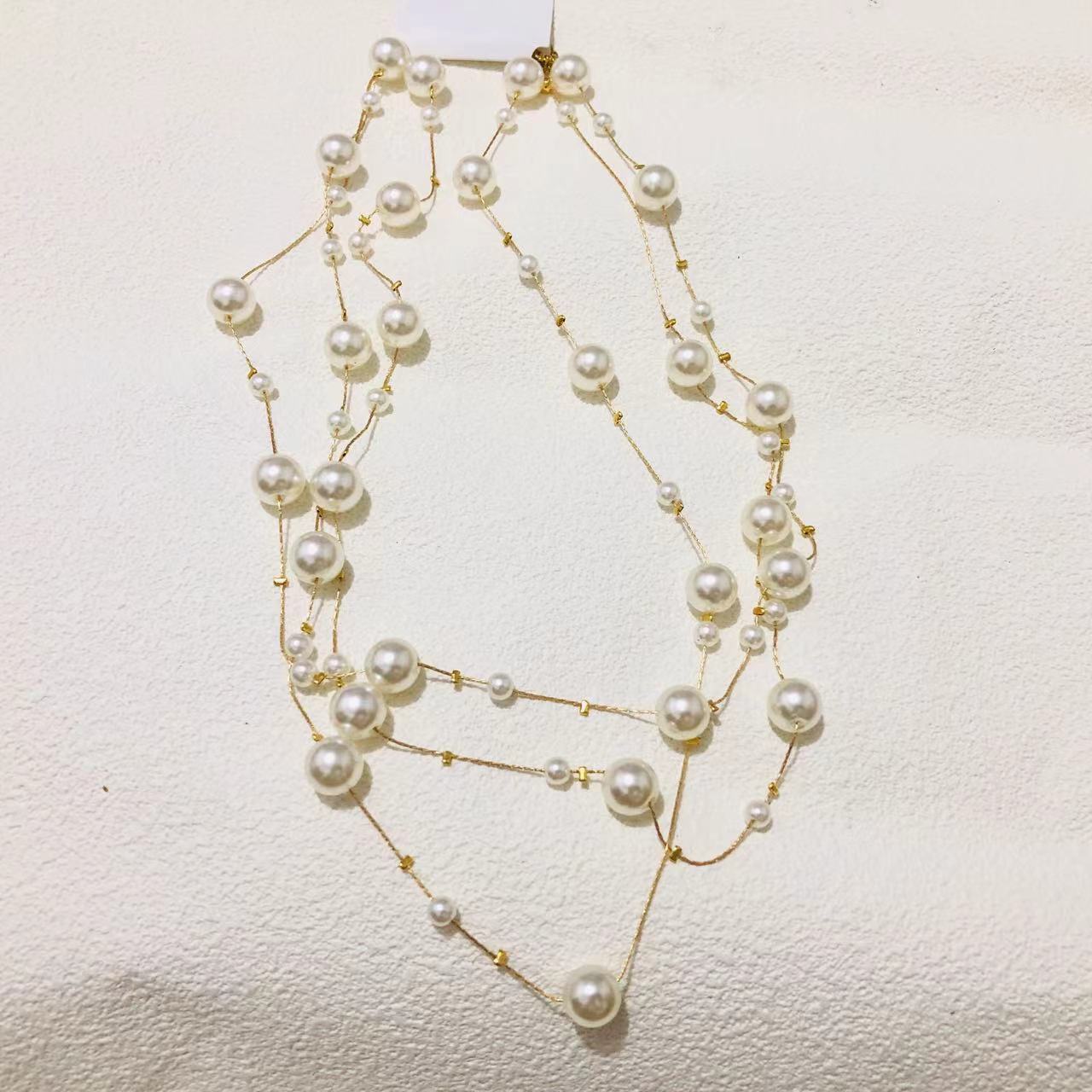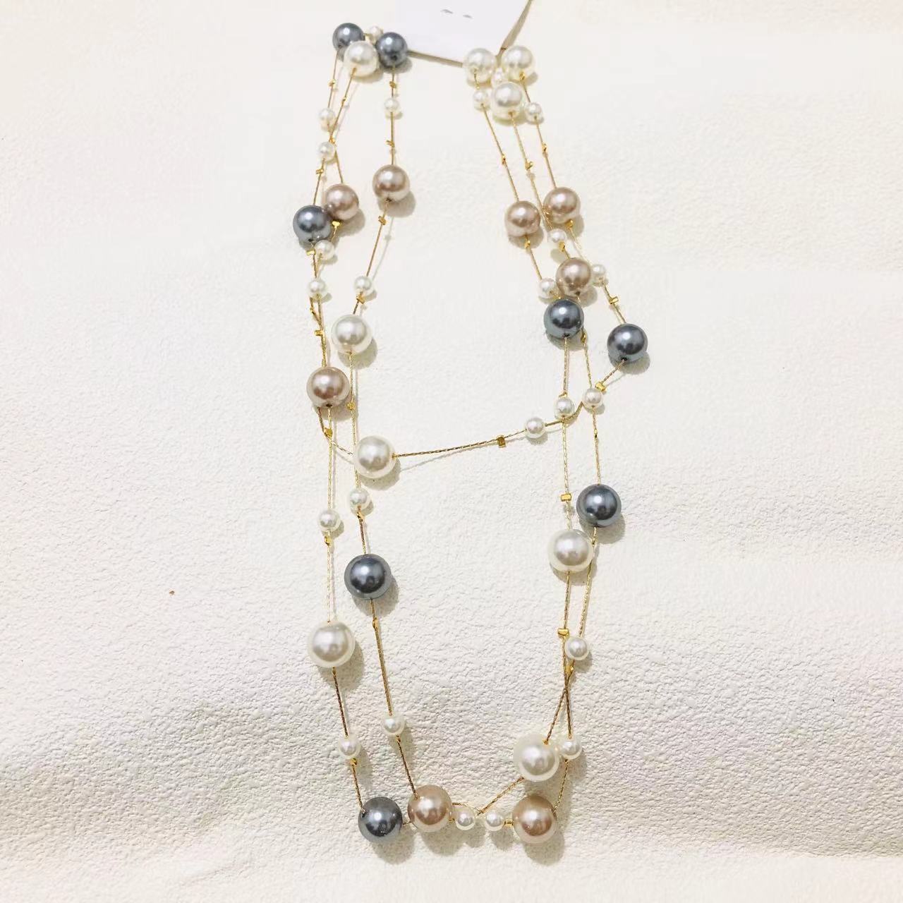 e634 white beads long sweater chain