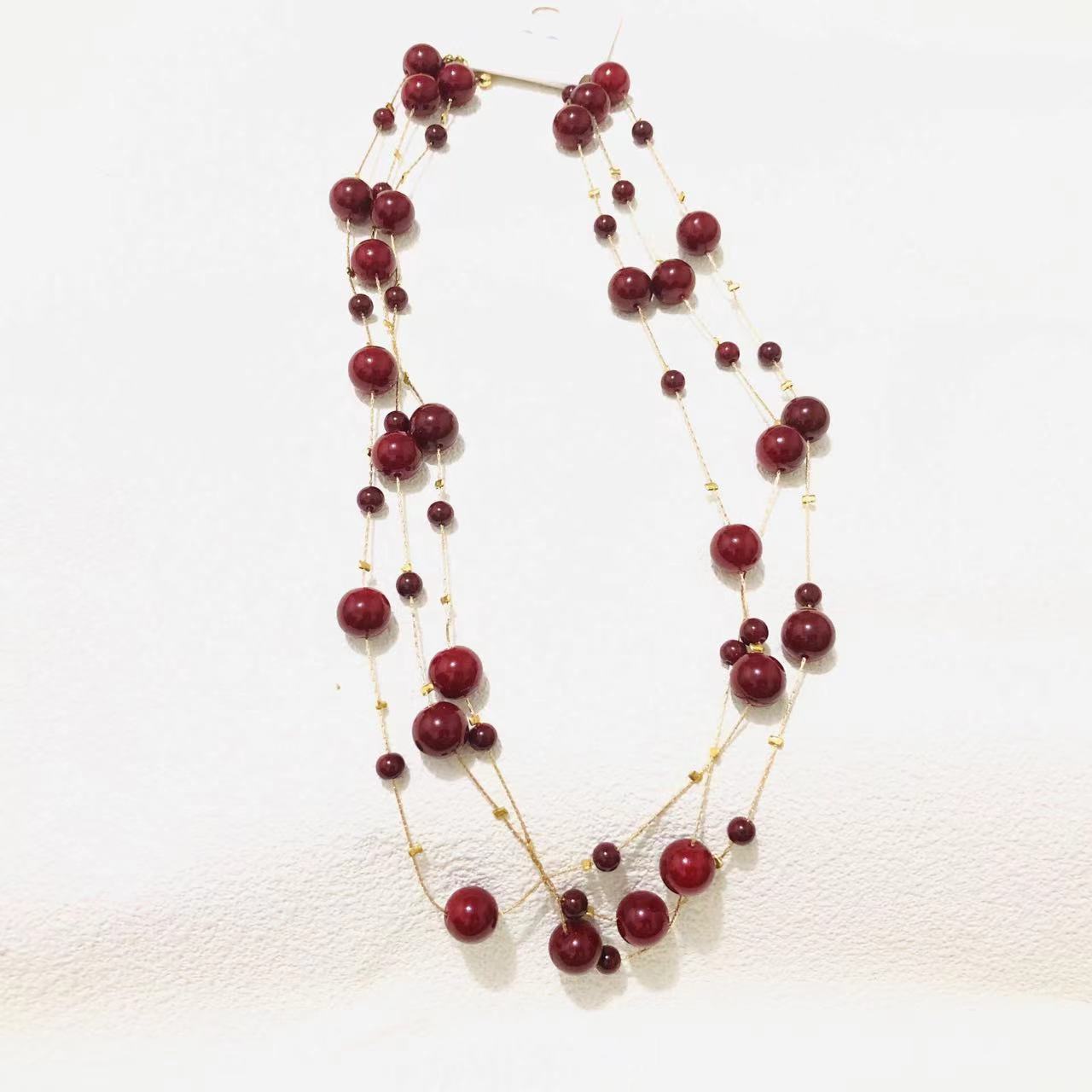e637 wine red beads long sweater chain
