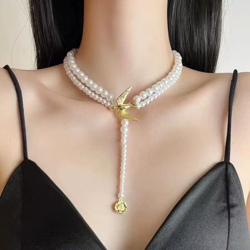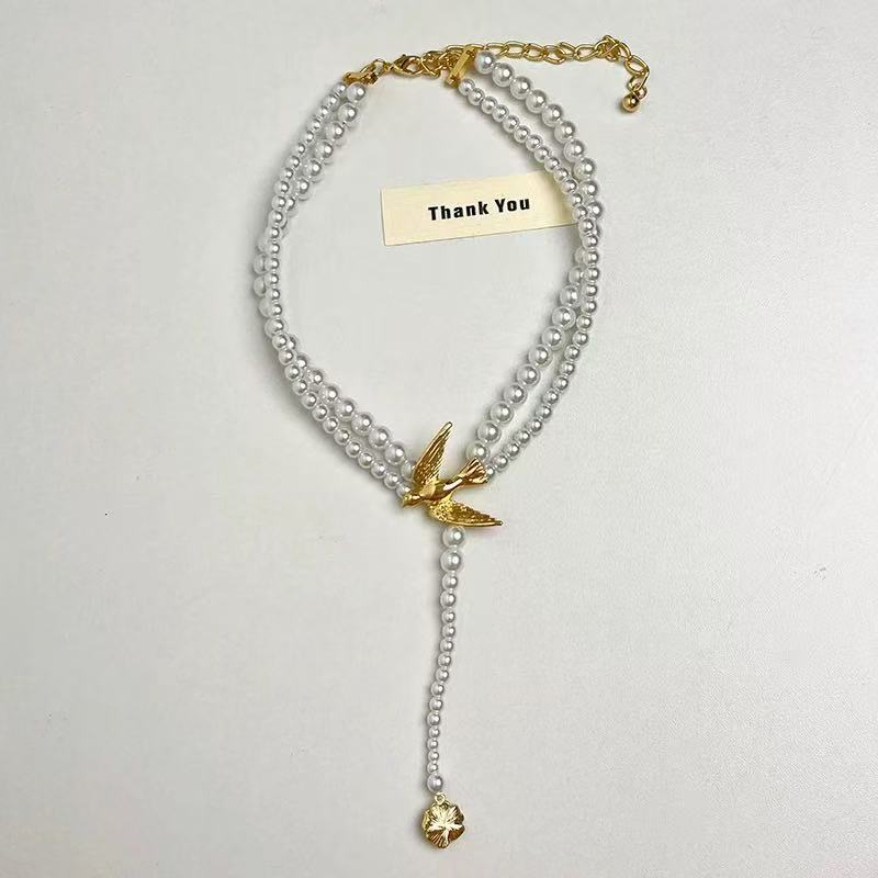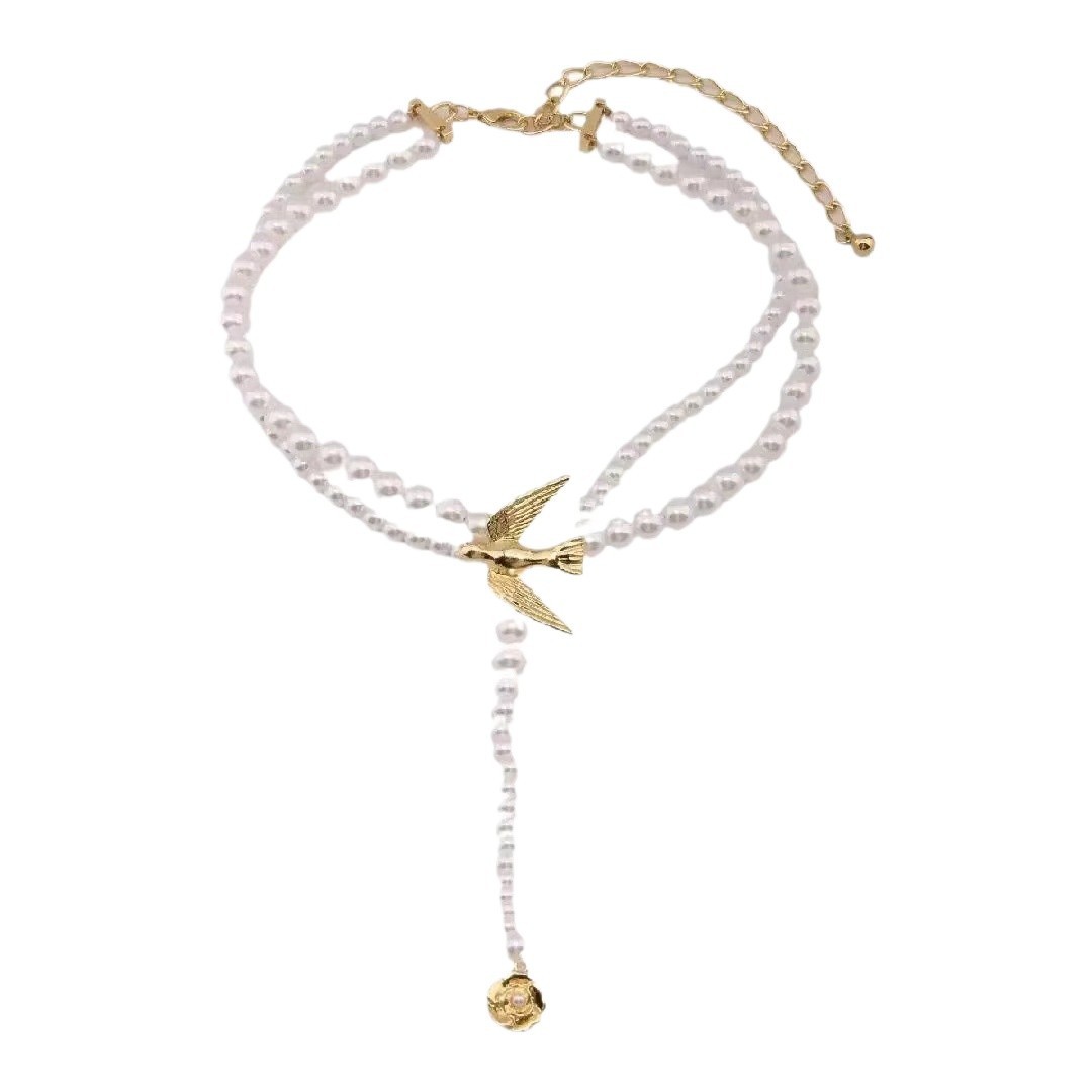 00209 flying bird white necklace