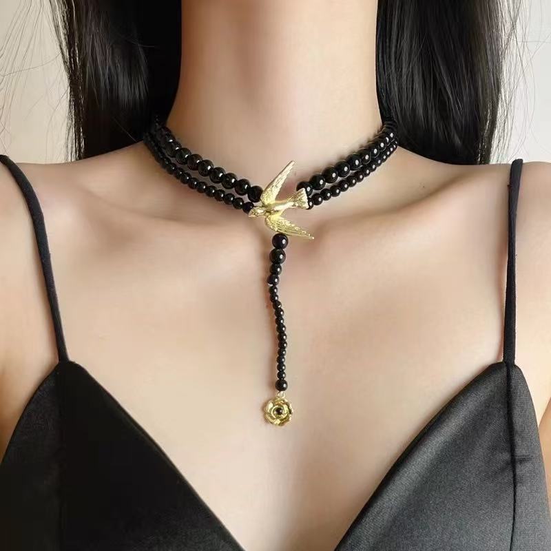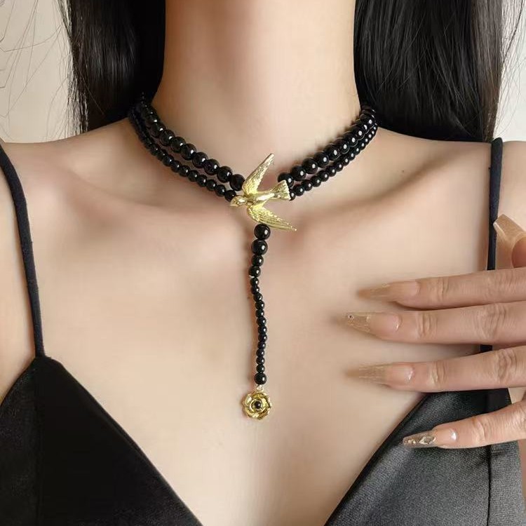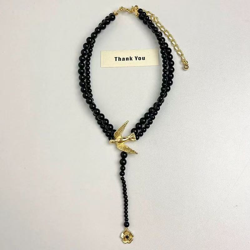 00208 flying bird, black necklace