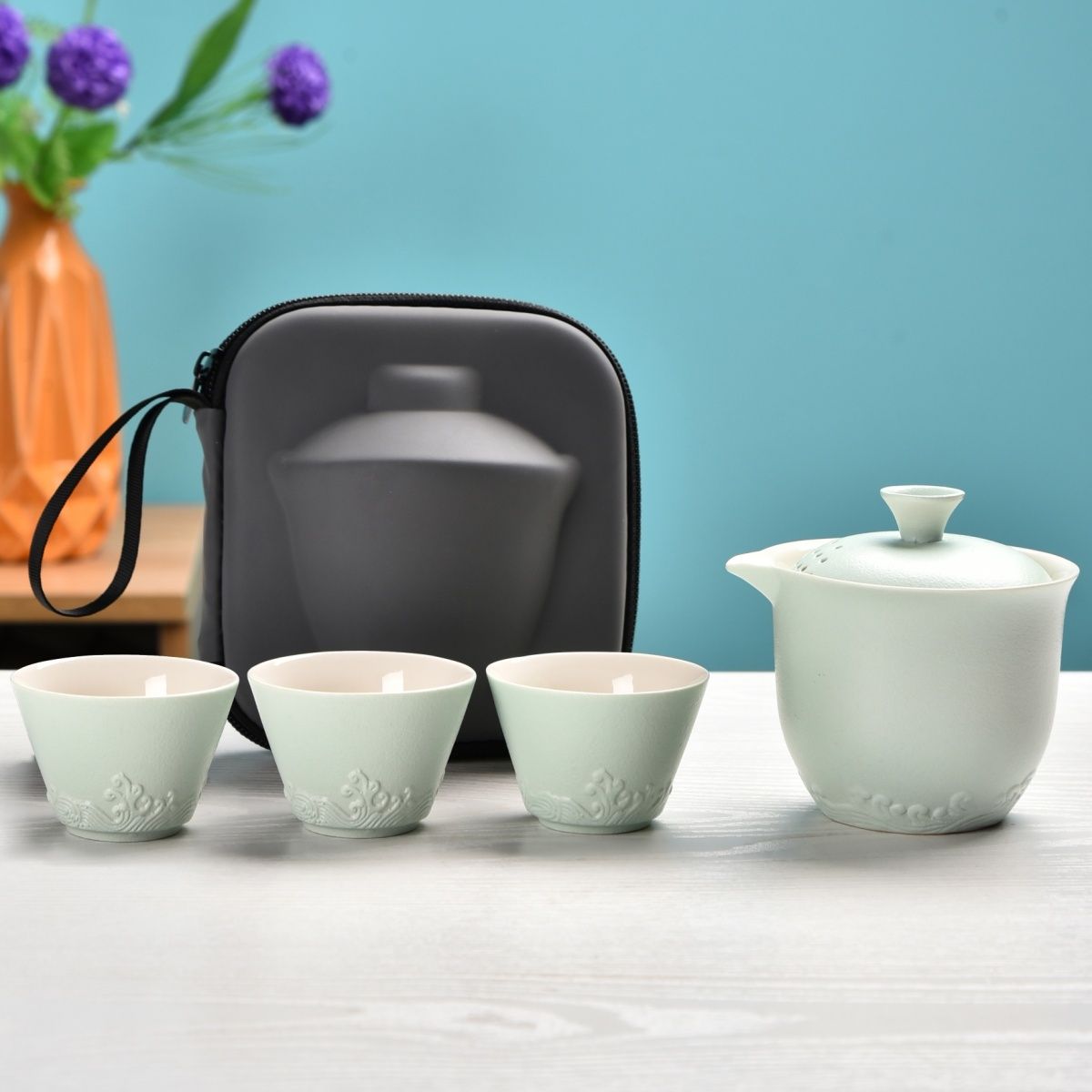 | light green travel tea set one pot fills three cups + gift bag large cup | ¥19.01 | 999999 piece available |