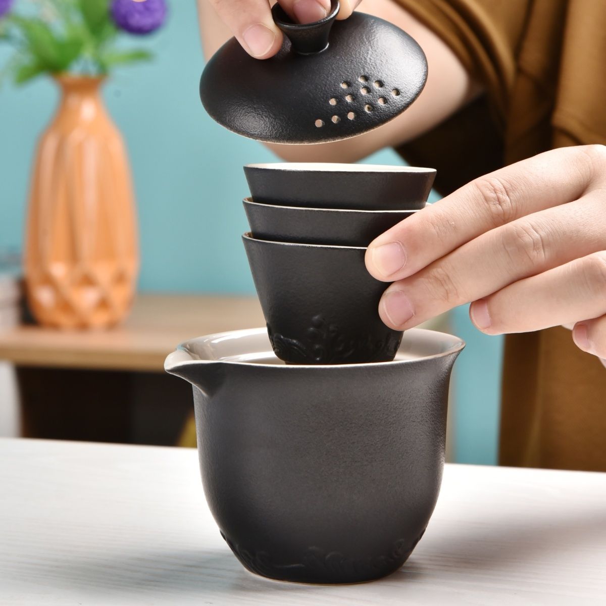 | matte black travel tea set one pot fills three cups + gift bag large cup | ¥19.01 | 999999 piece available |