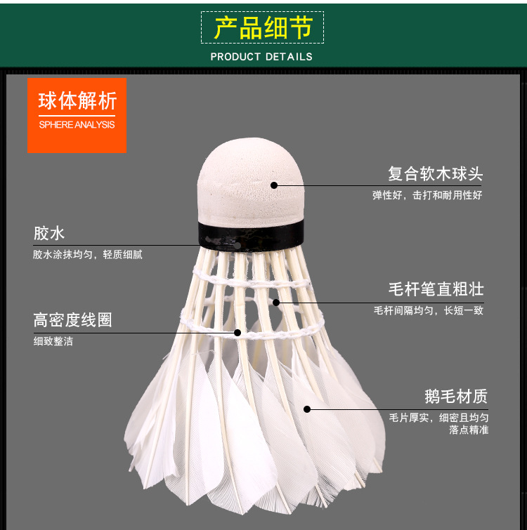 12 pcs goose feather badminton